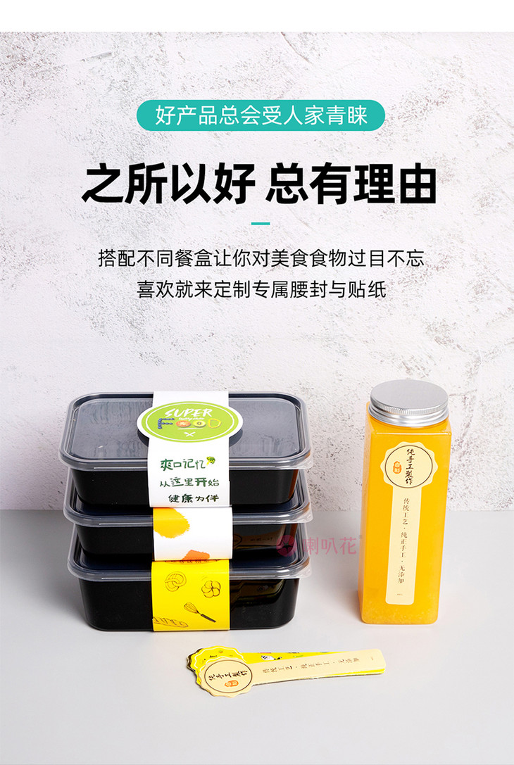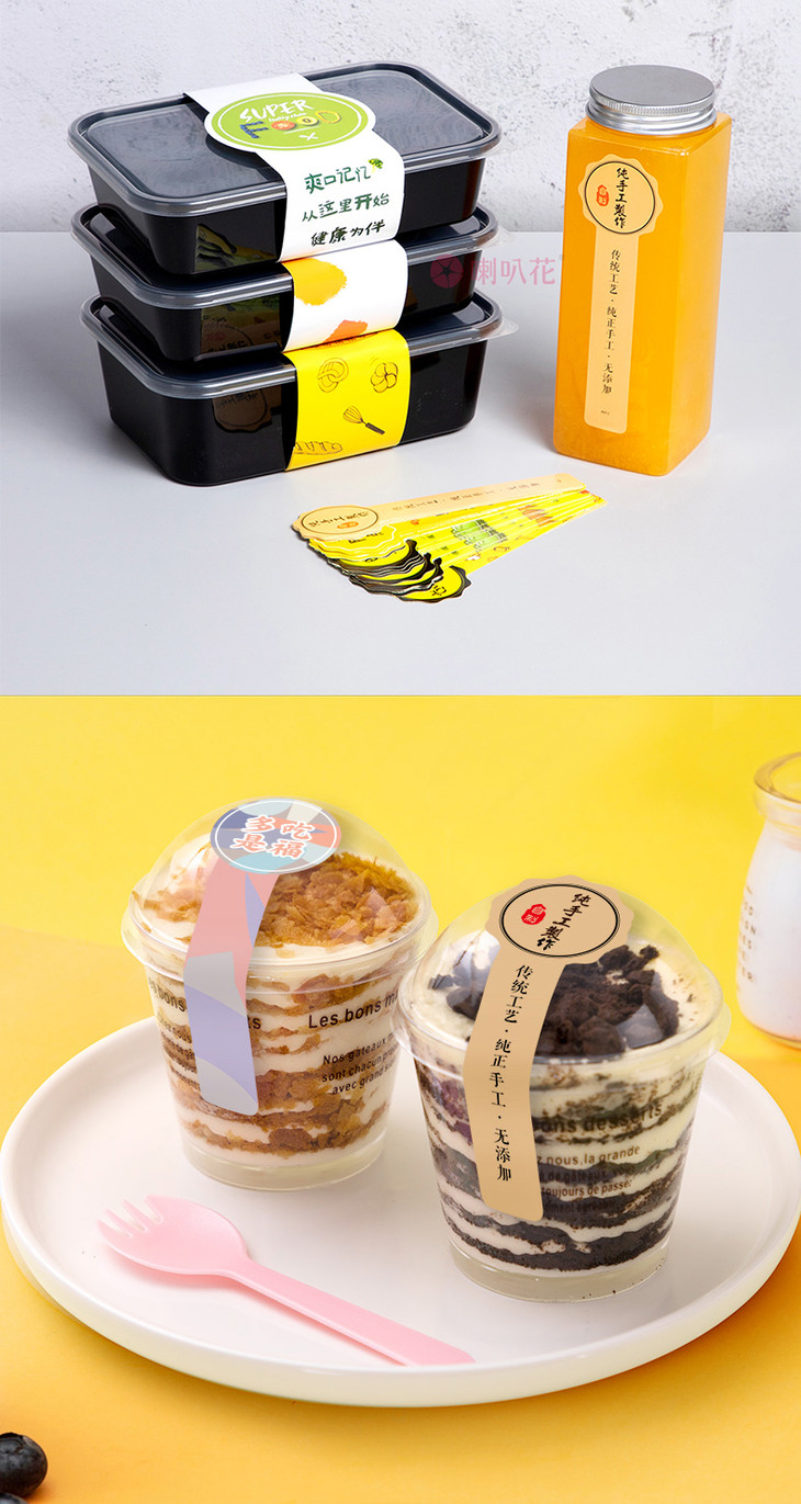 喇叭花一次性不干胶贴纸标签奶茶杯封口贴纸外卖不干胶定制50只