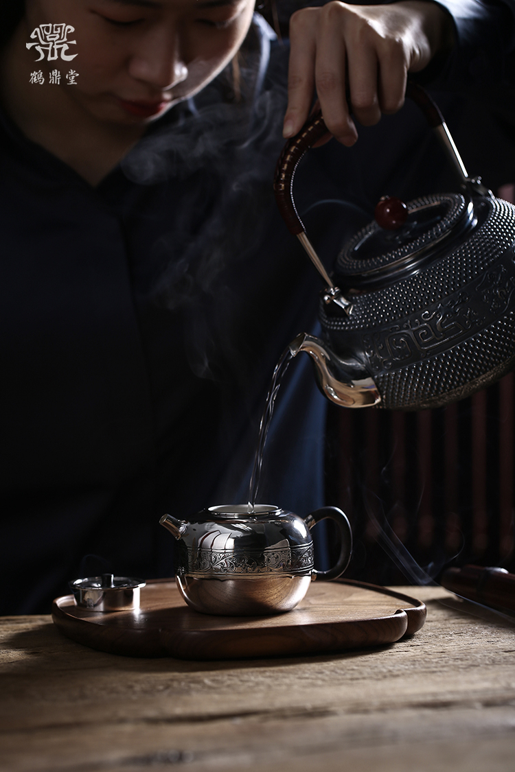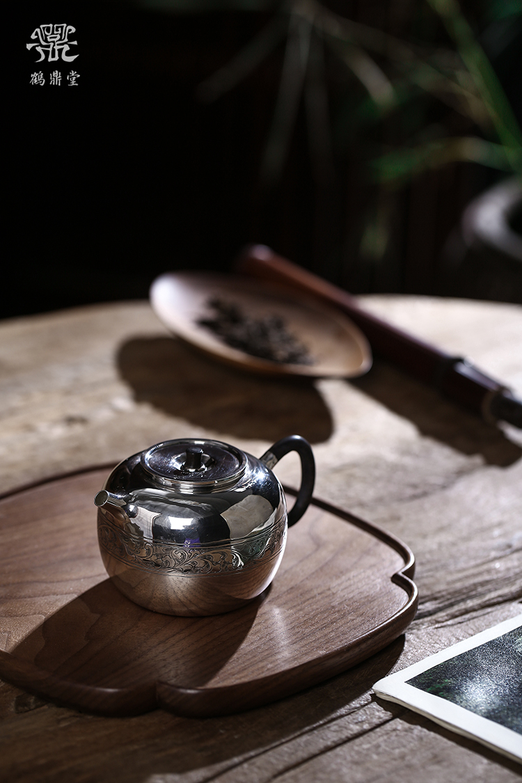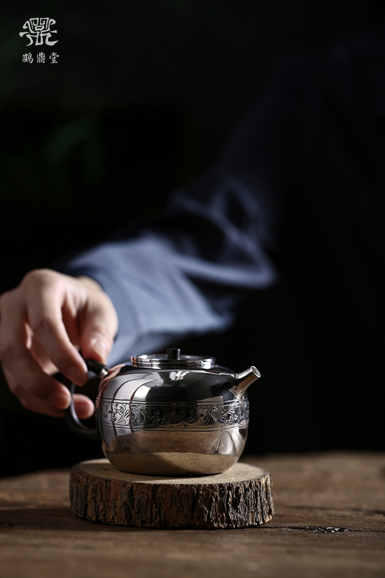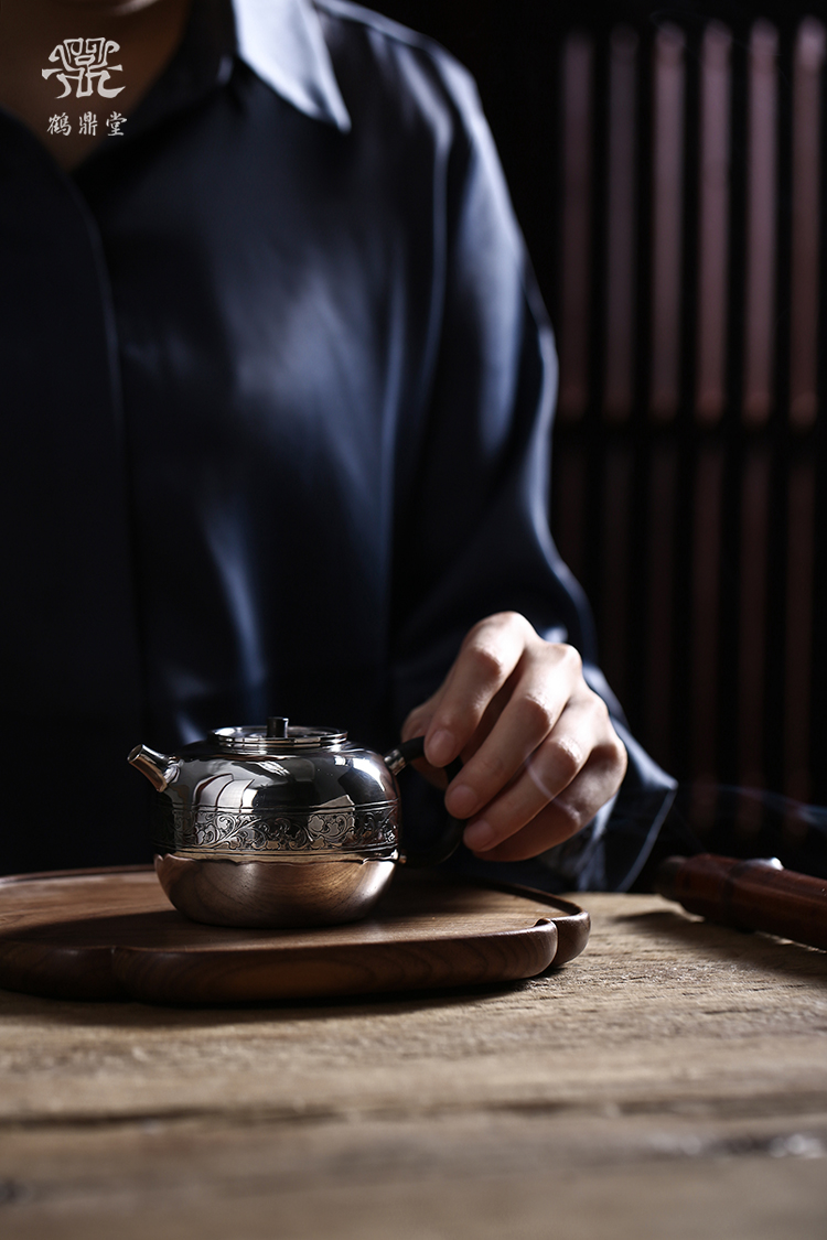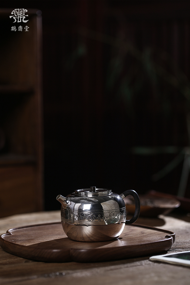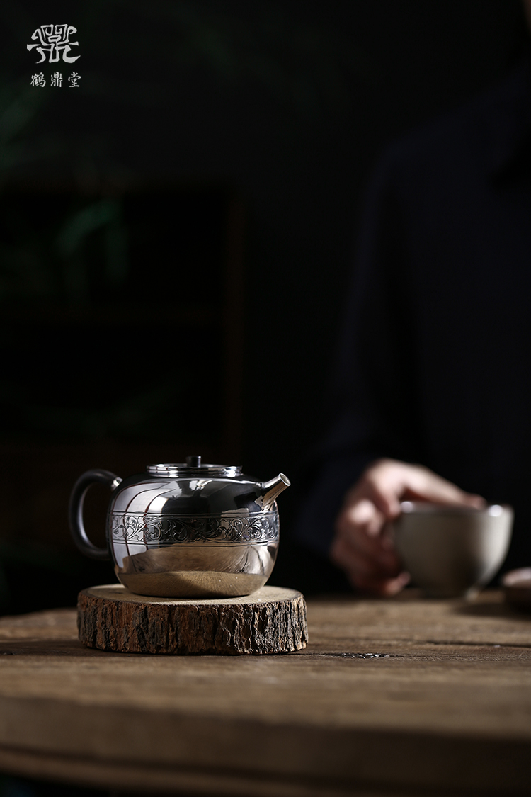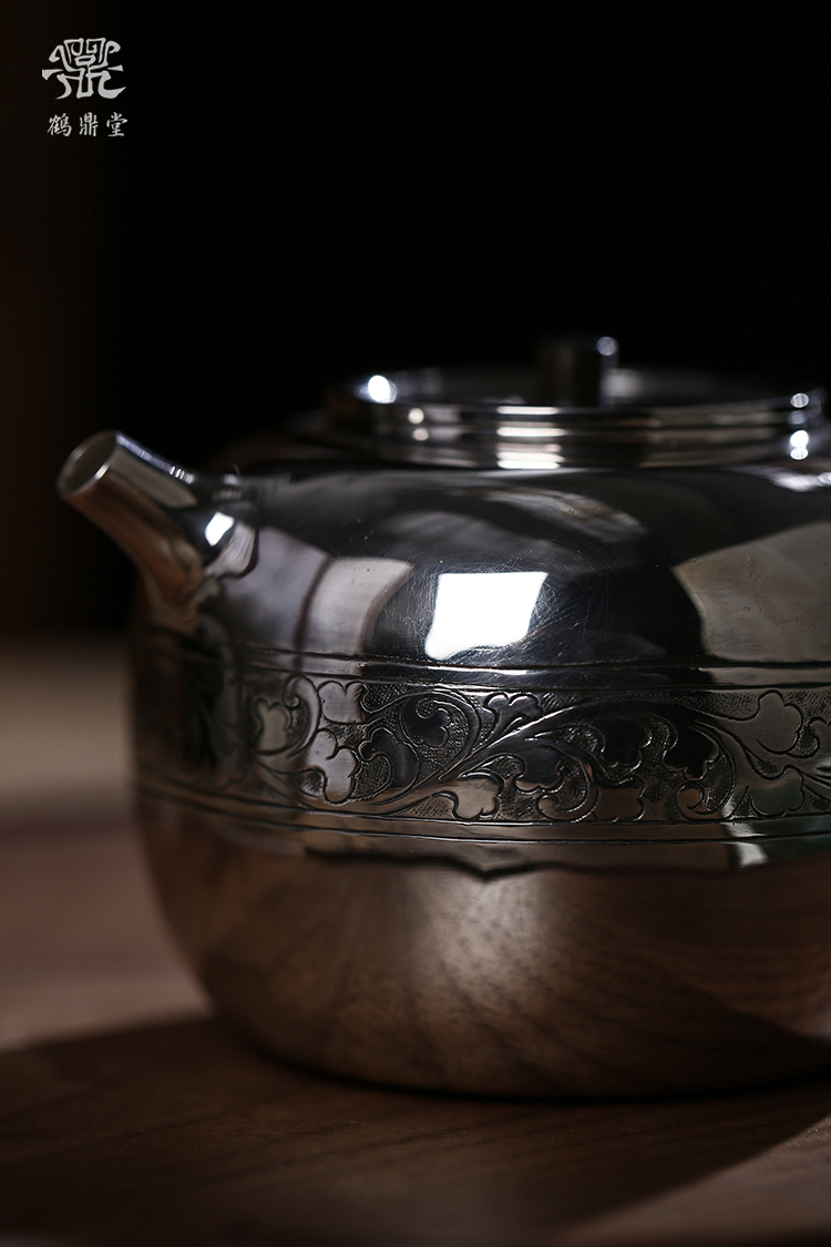 鹤鼎堂闻天系列肃雍急须錾刻缠枝莲纹(银色)(缺货)