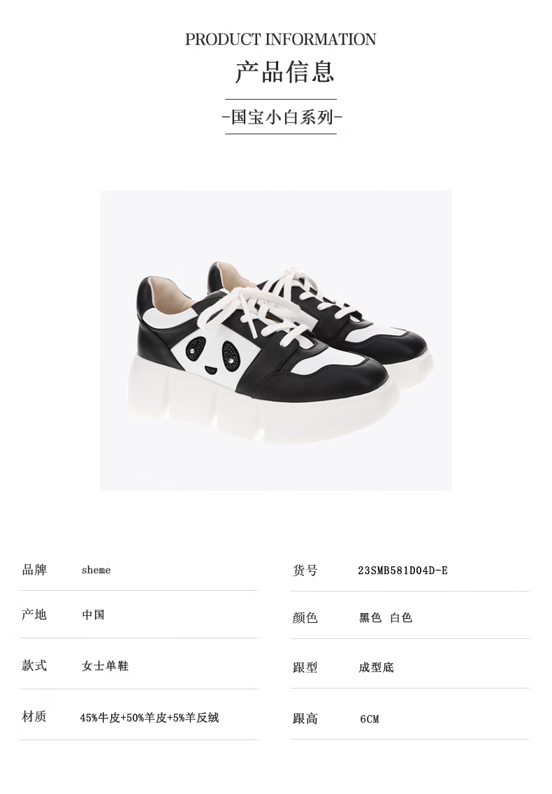sheme国宝小白系列撞色拼接熊猫烫钻点缀休闲时尚男女同款运动鞋可定制