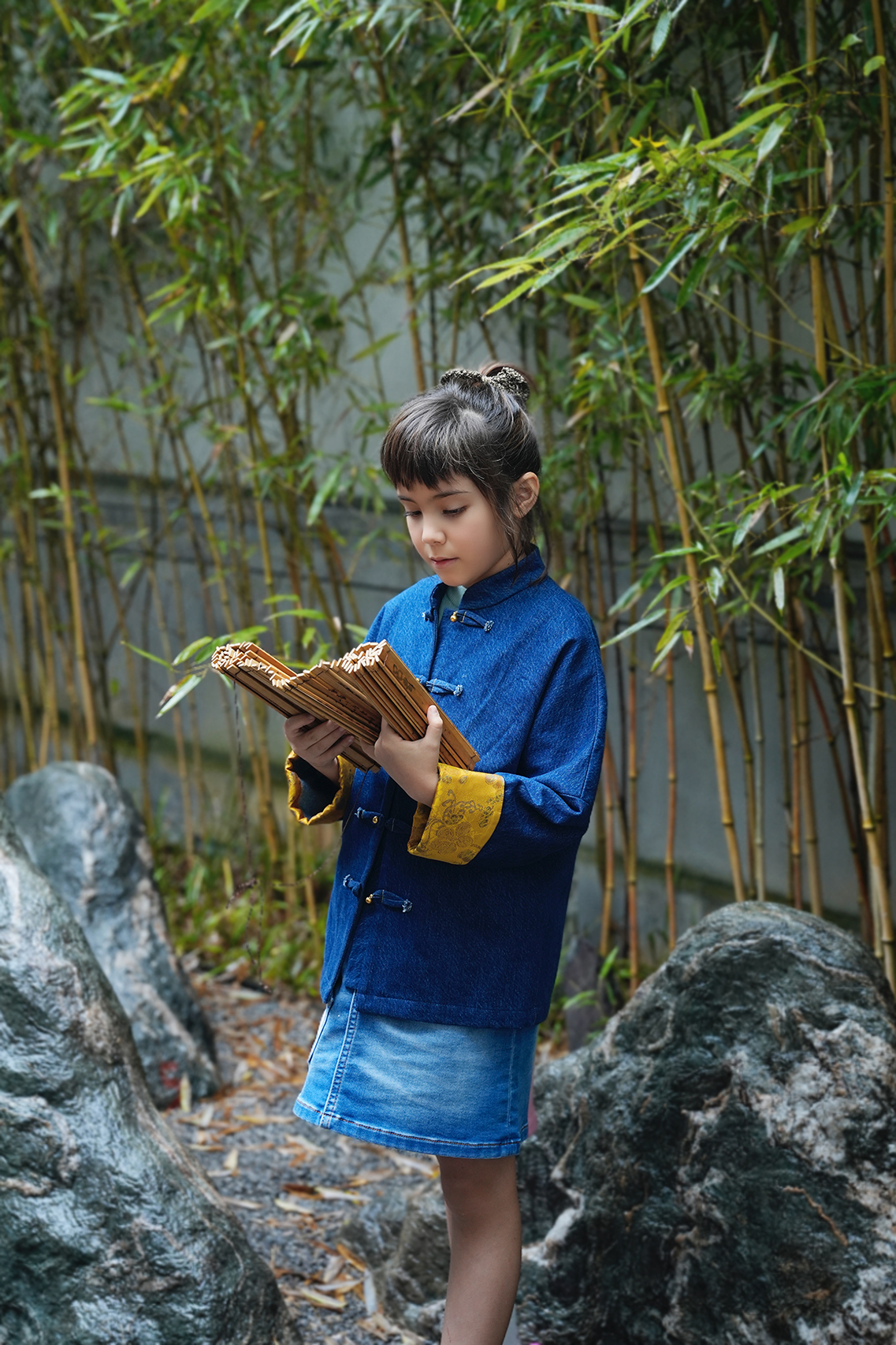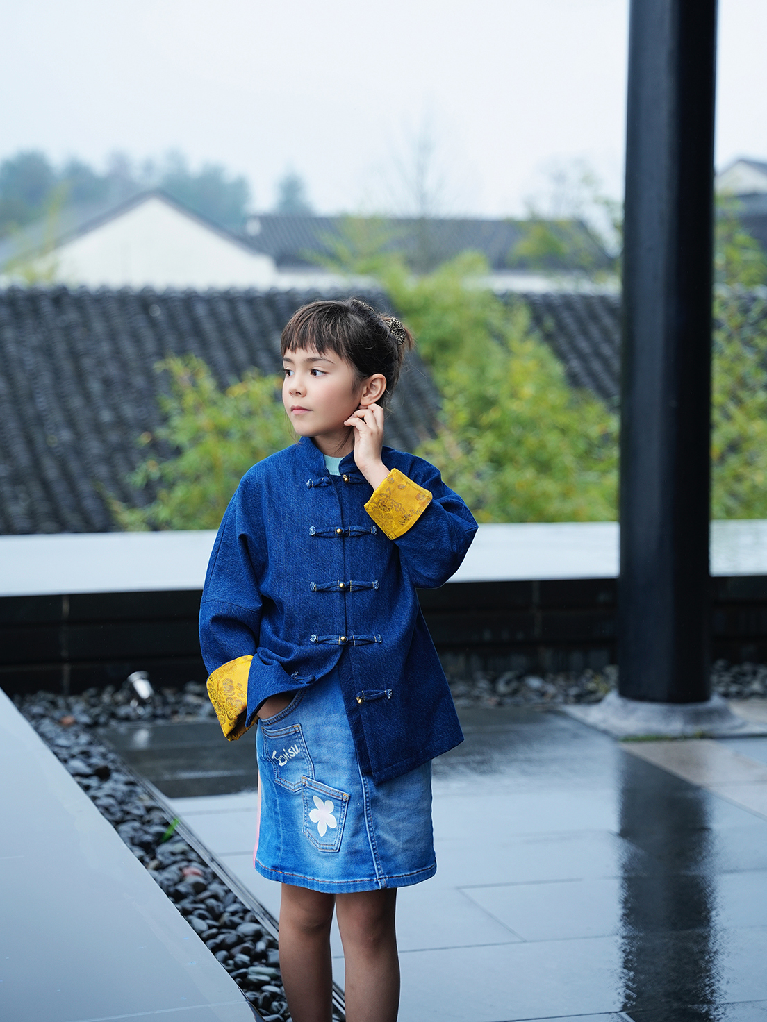 盛唐牡丹| 儿童Kids Series 新中式牛仔宋锦外套-红色/黄色袖口可选(4-6岁)