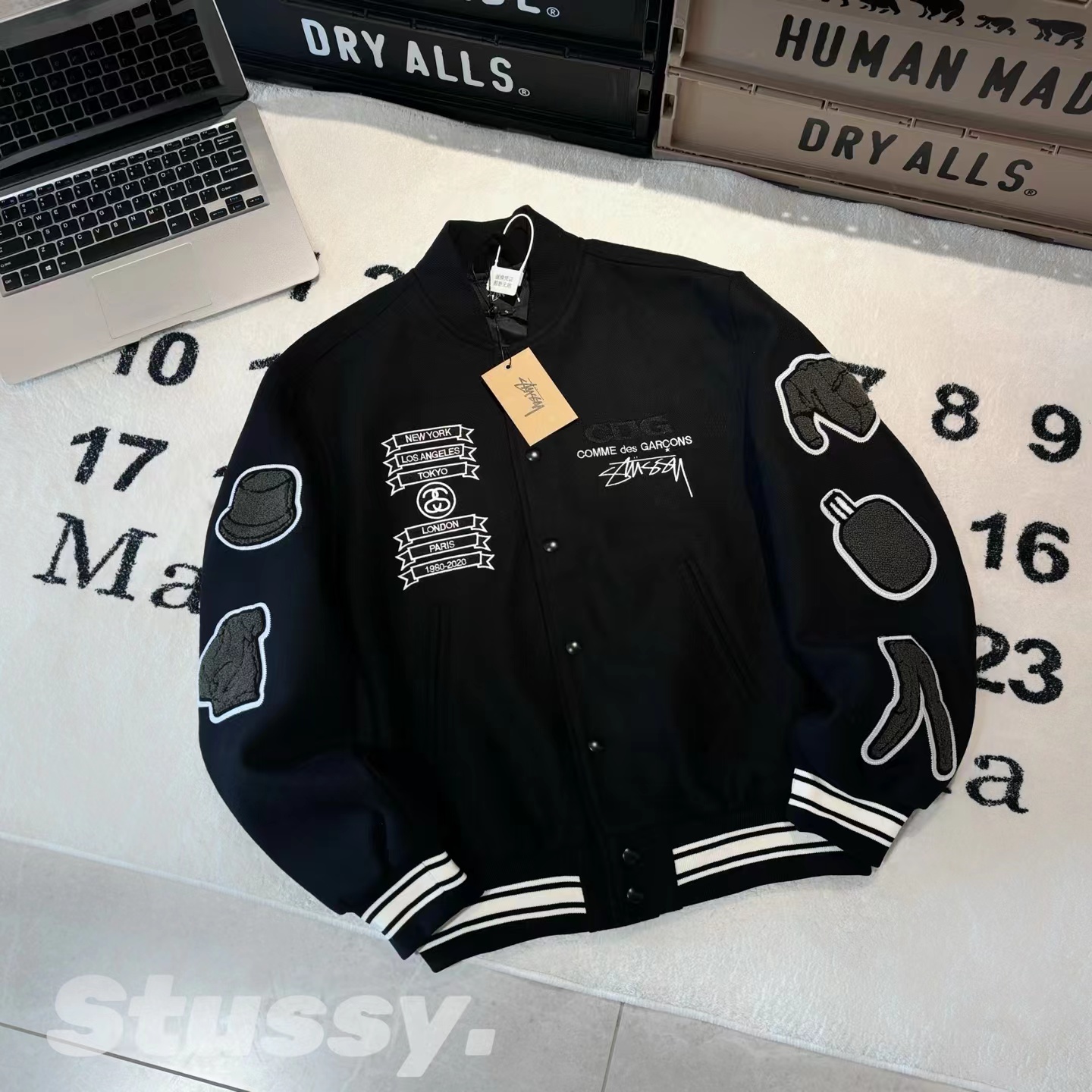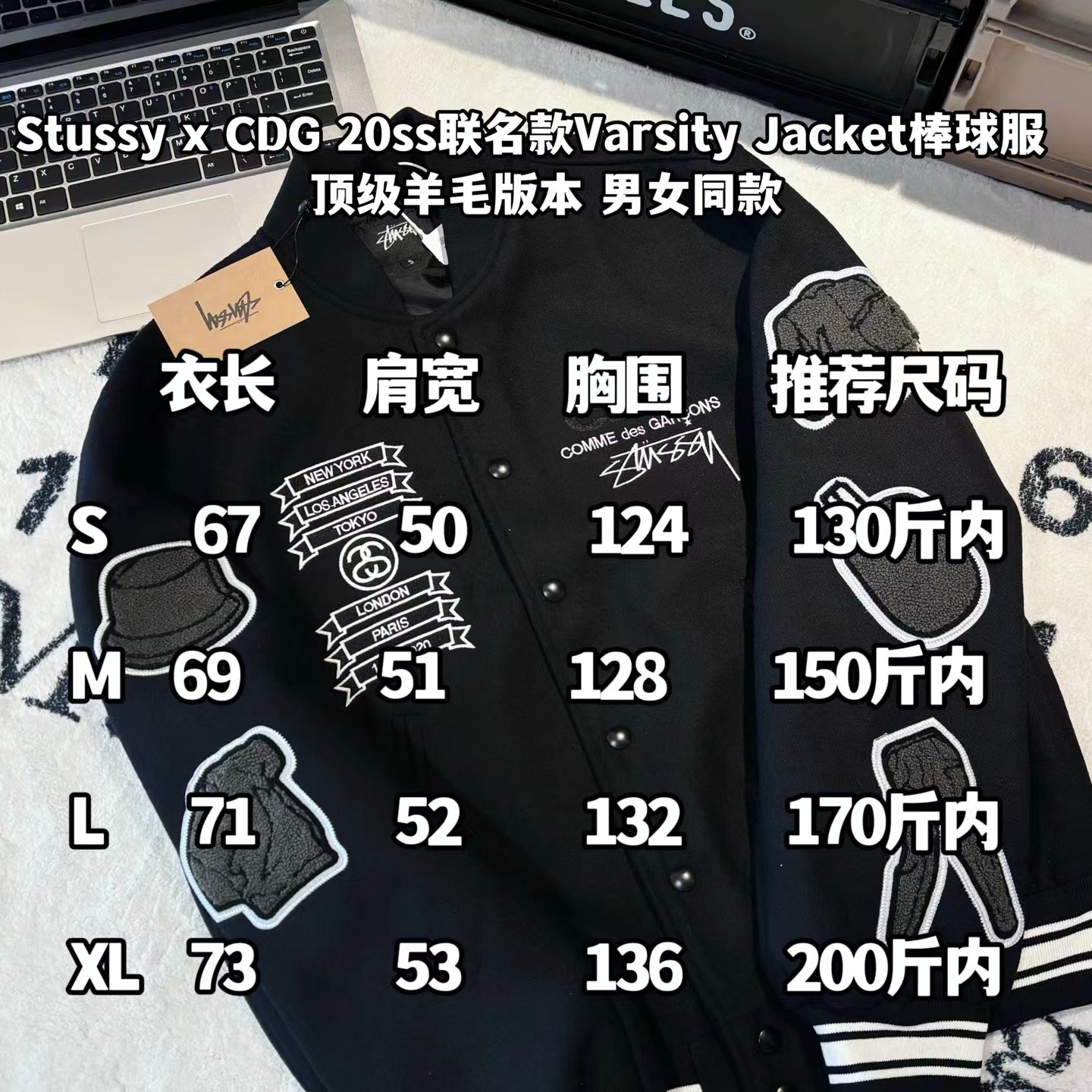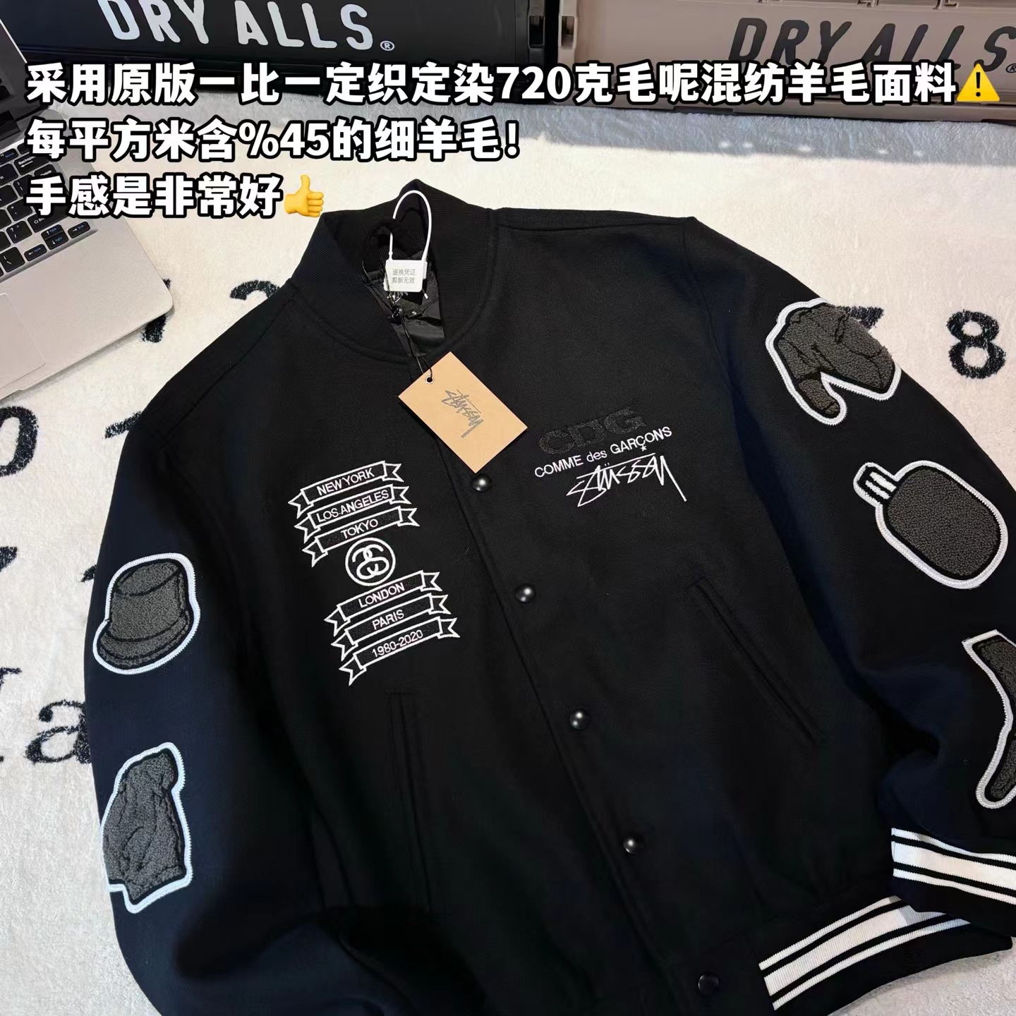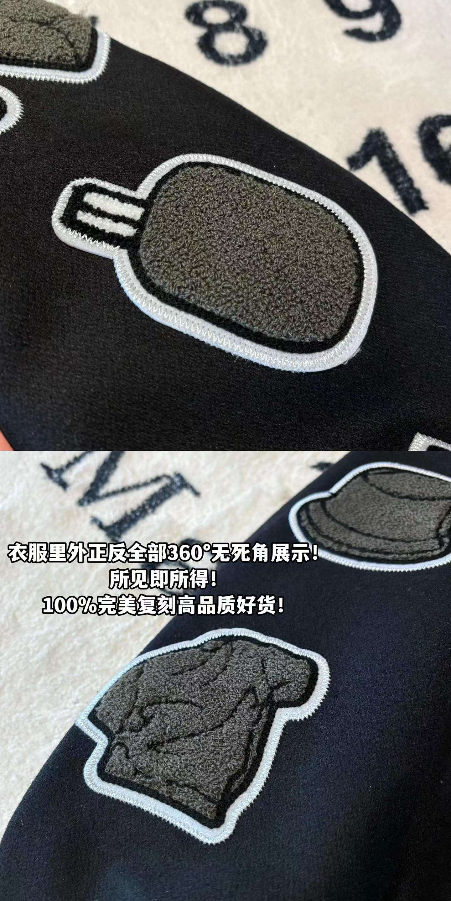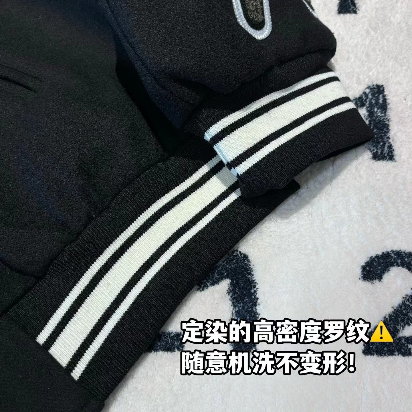 棒球服 男女同款-面料:采用原版一比一定织定染720克毛呢混纺羊毛面料。 每平方米含%45的细羊毛,手感是非常好。-辅料:原版拆解开发,一比一定制的小标,领标,水洗,吊牌,五金等等。-工艺:原版分解,从裁剪,拼接,到缝制工艺完全原版一比一。
