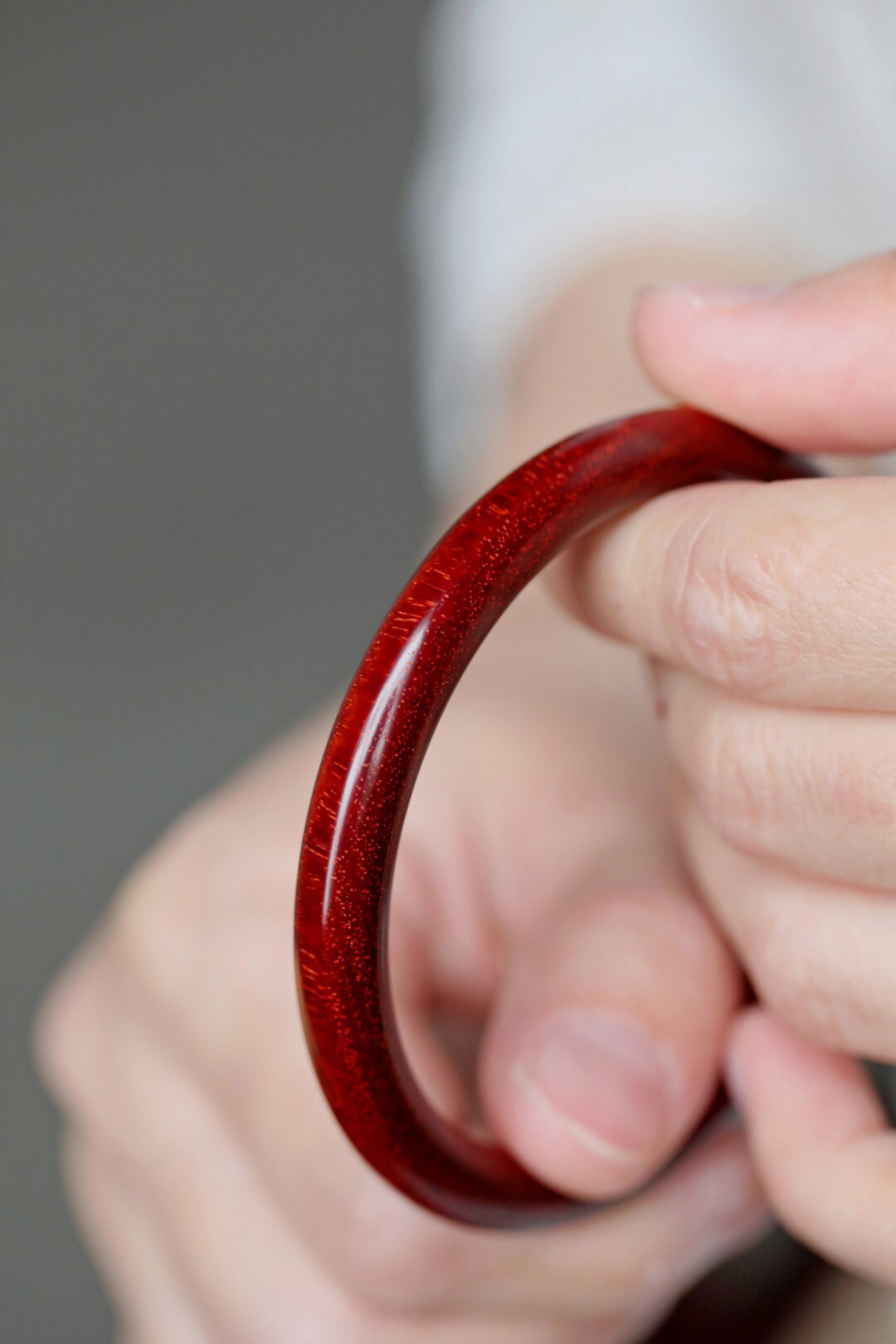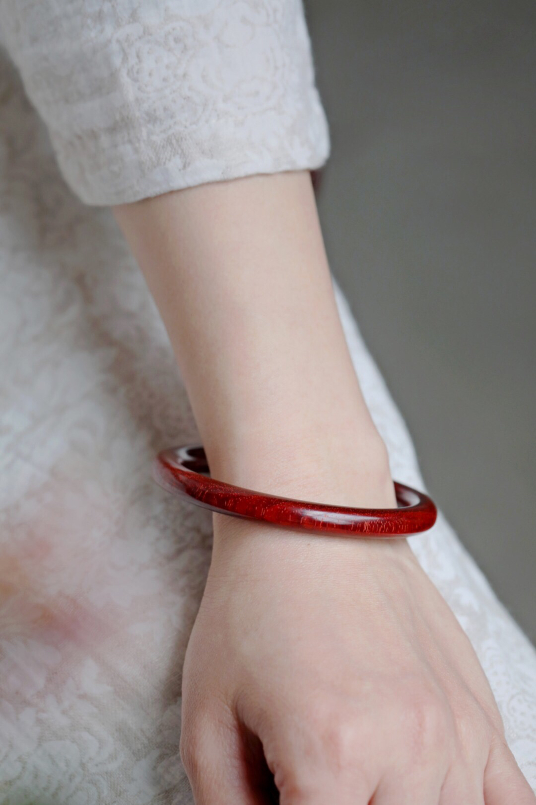这一款宝贝耗费材料,精选优质的紫檀料制作而成,颜色红润,料质细腻,纹理清晰,底色干净。紫檀料质好,去掉中心大料,制作成手镯,成本非常的高。手镯日常把玩佩戴,别有特色,简单之中透露着大气,别具端庄富贵的风韵。送礼或者收藏的精品,不要错过哦!