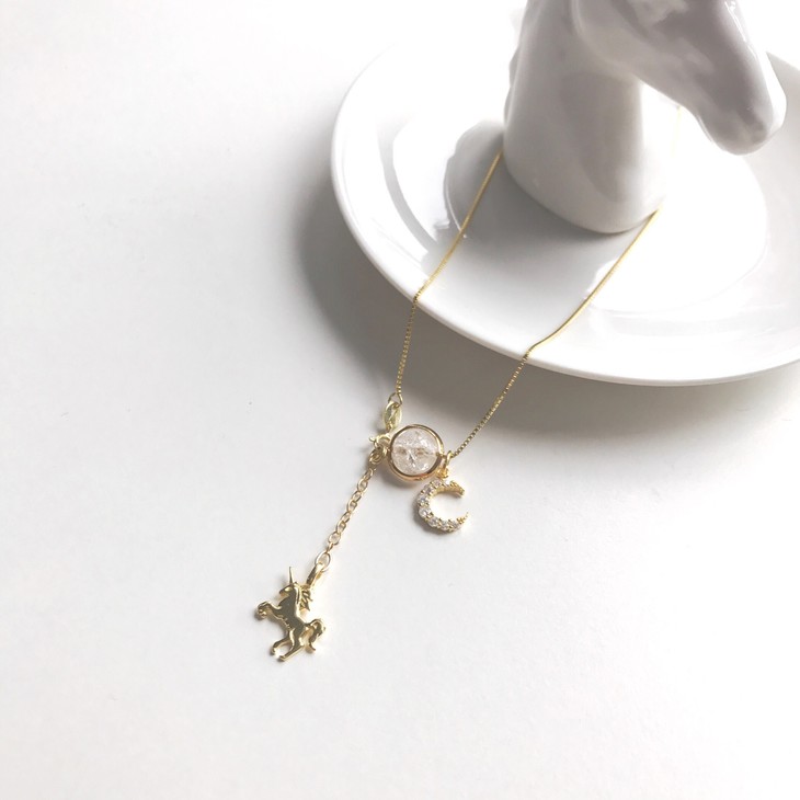 【项链】独角兽守护 爱情 锁骨链 Y型项链 情人节礼物 14K包金