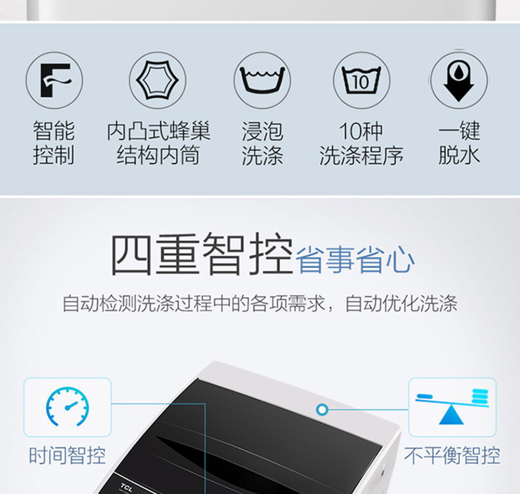 TCL 5.5公斤 全自动波轮洗衣机 一键脱水 24小时预约(亮灰色) XQB55-36SP