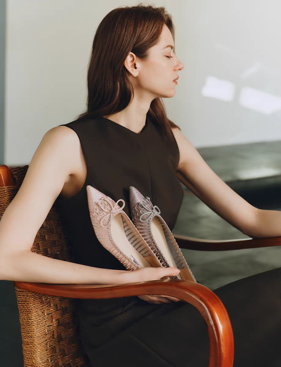 BF楼73Hours73hours女鞋礼物清单2026春季新款显瘦尖头网纱裸肤鞋平底单鞋女吊牌价1180活动价931