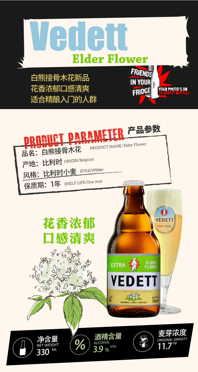 国产白熊小麦接骨木花啤酒 330ml*24瓶 3.9%VOL