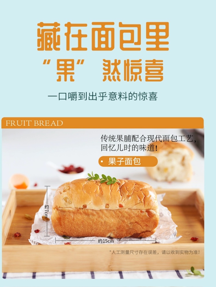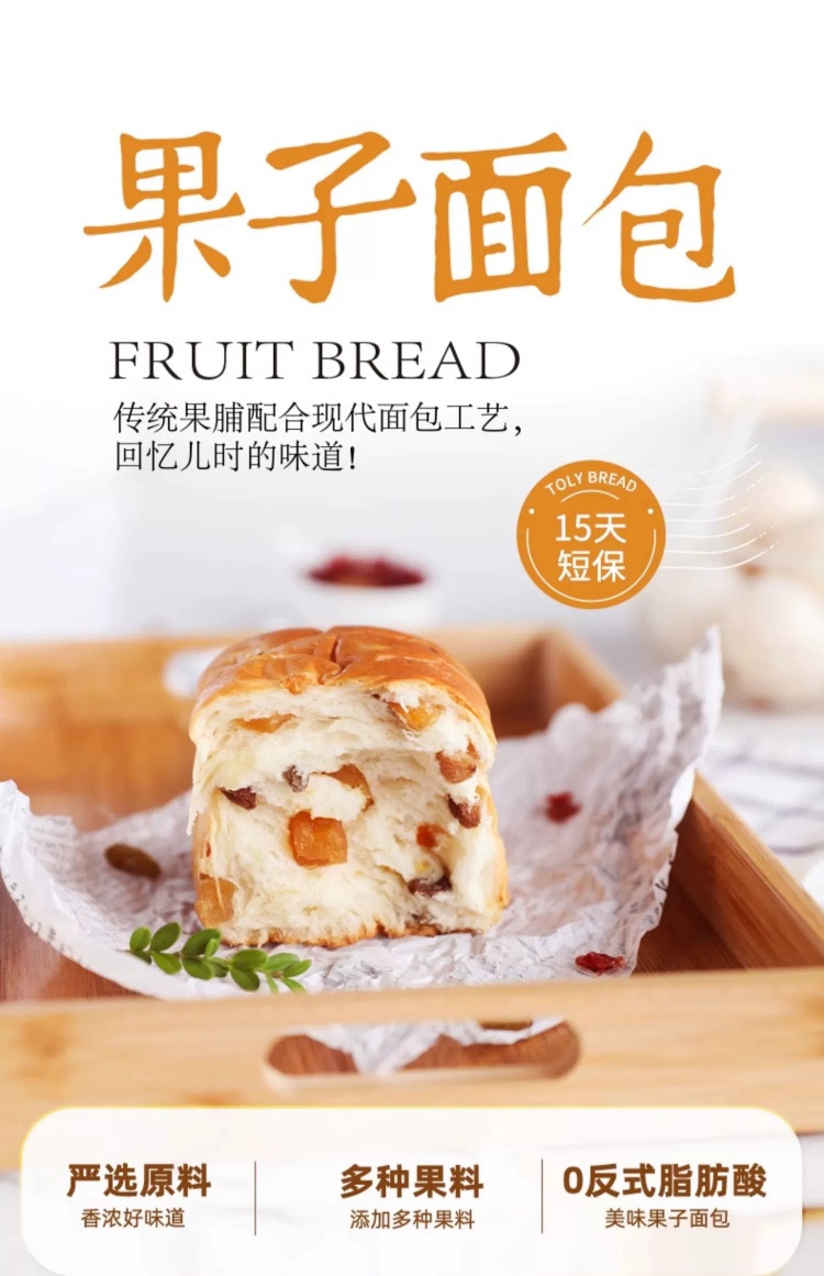 桃李果子面包240g 早餐食品果脯果干短保面包网红代餐手撕