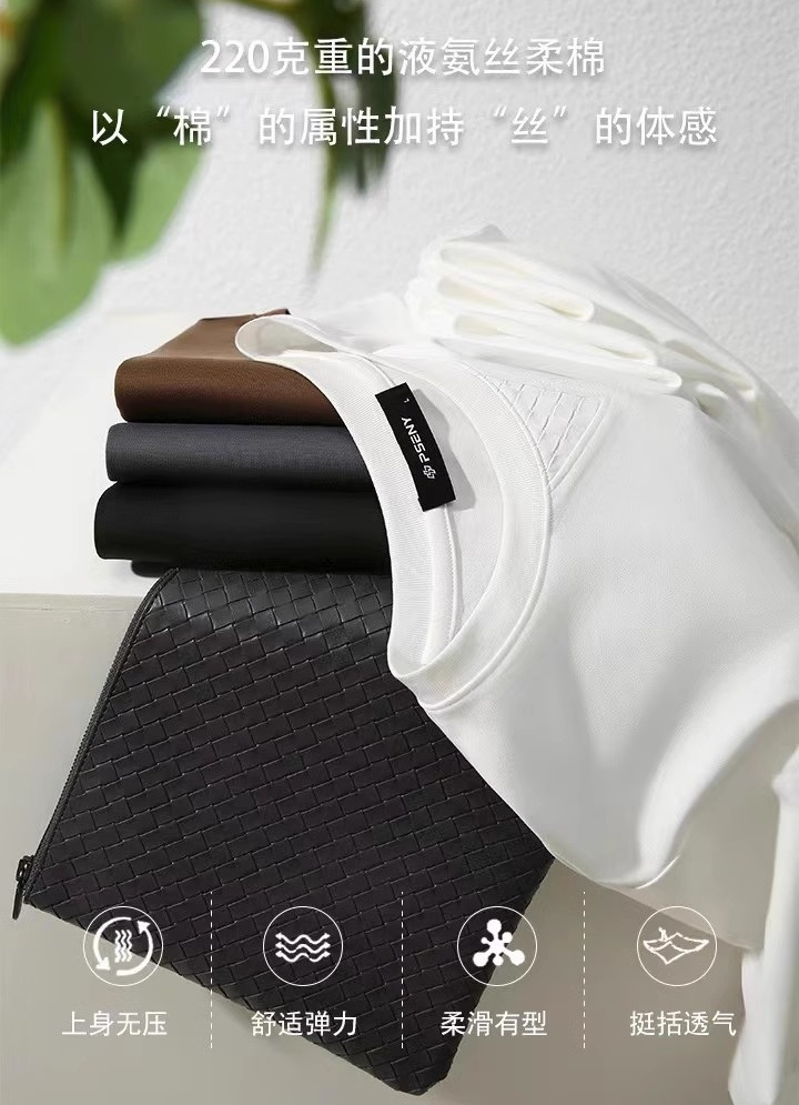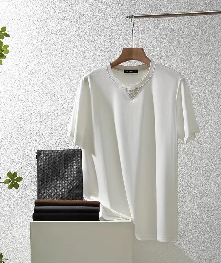 品牌商场同步高端液氨丝柔棉男士纯色通勤休闲T恤