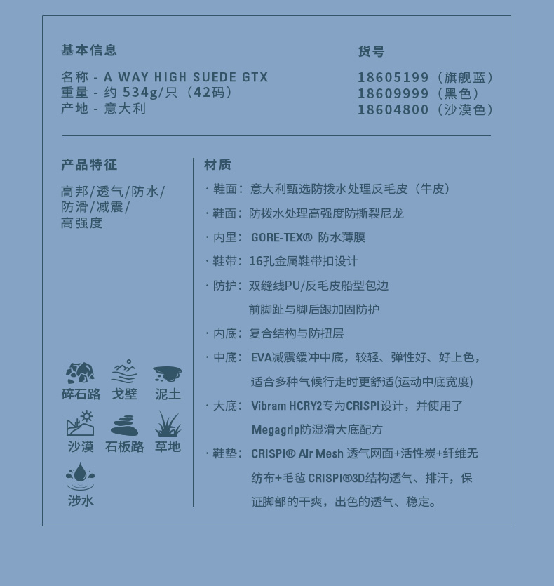 【限定款】CRISPI春秋大道男女牛皮防水防滑徒步登山鞋靴A WAY HIGH