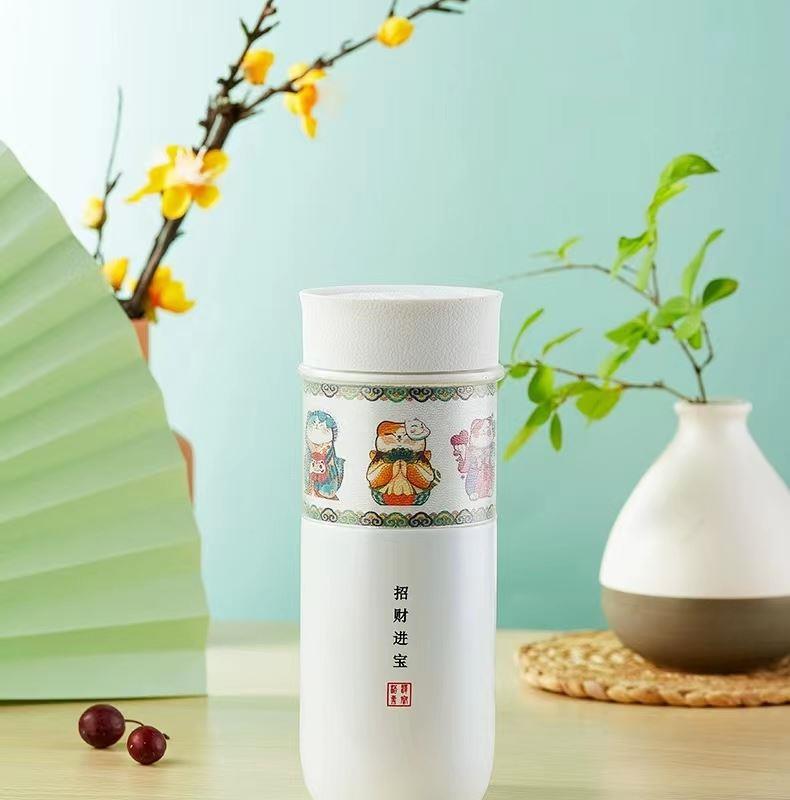 仙藤玉瓷保温杯大号国风文创礼品定制茶水杯