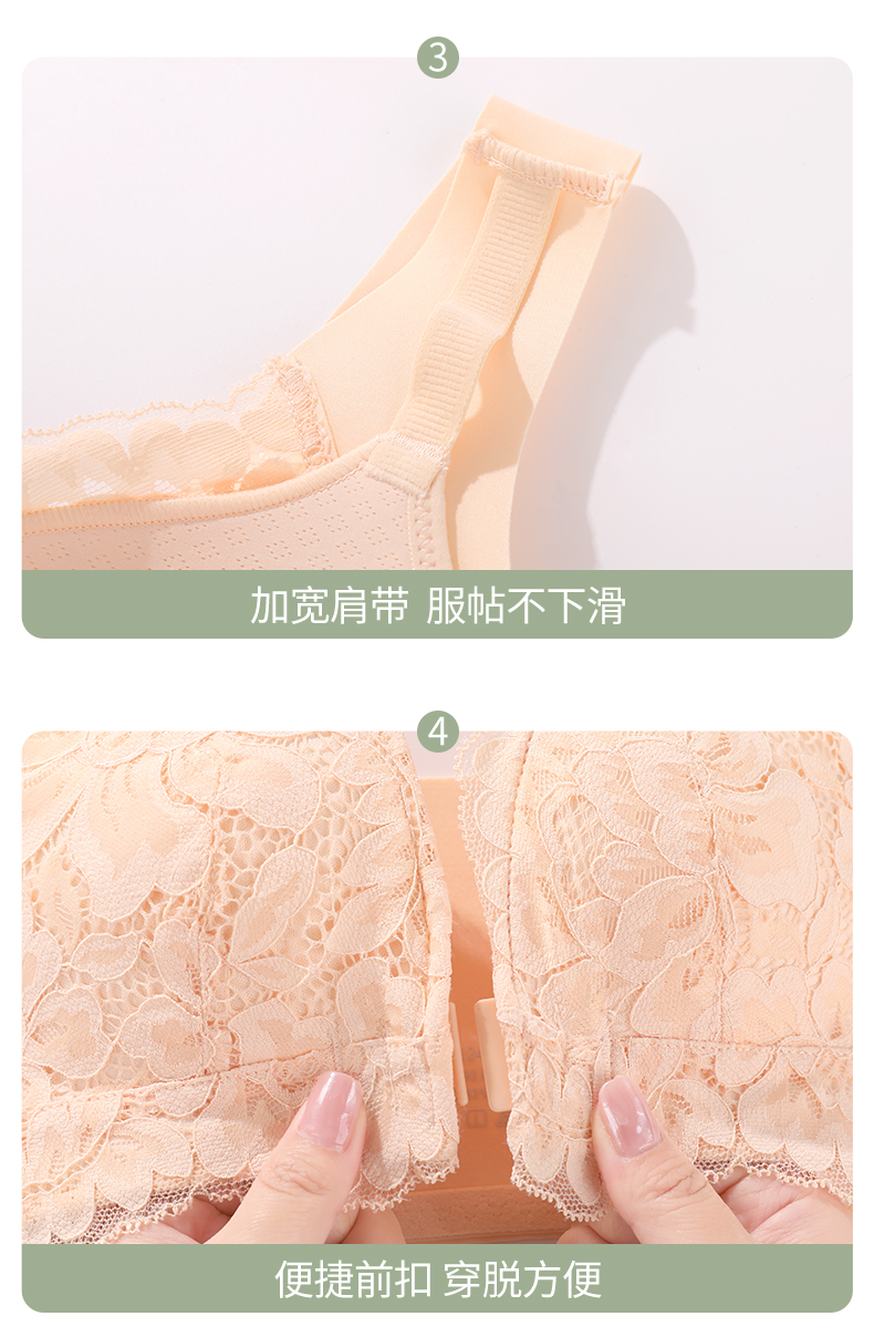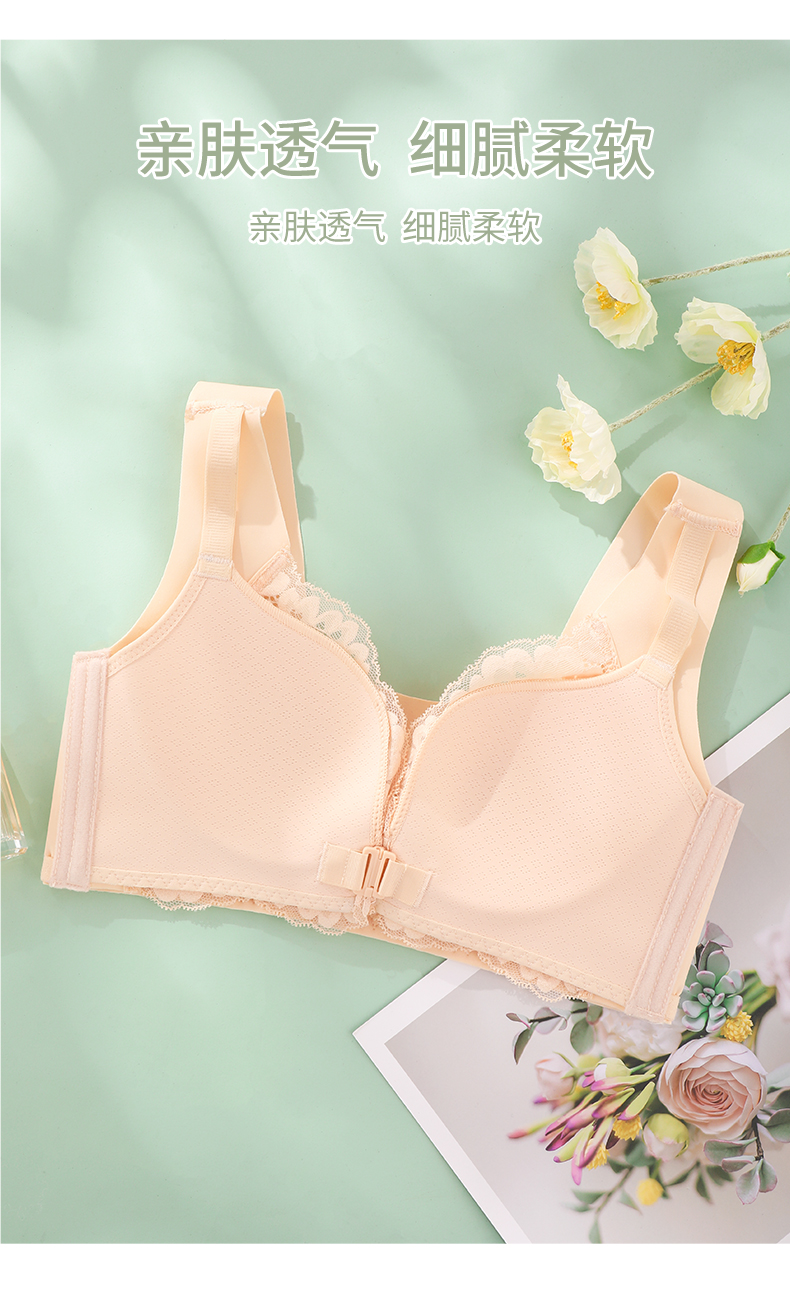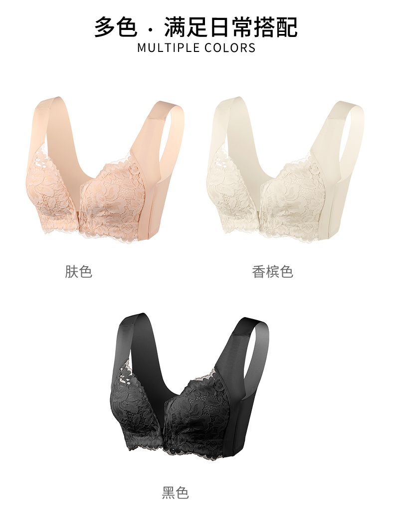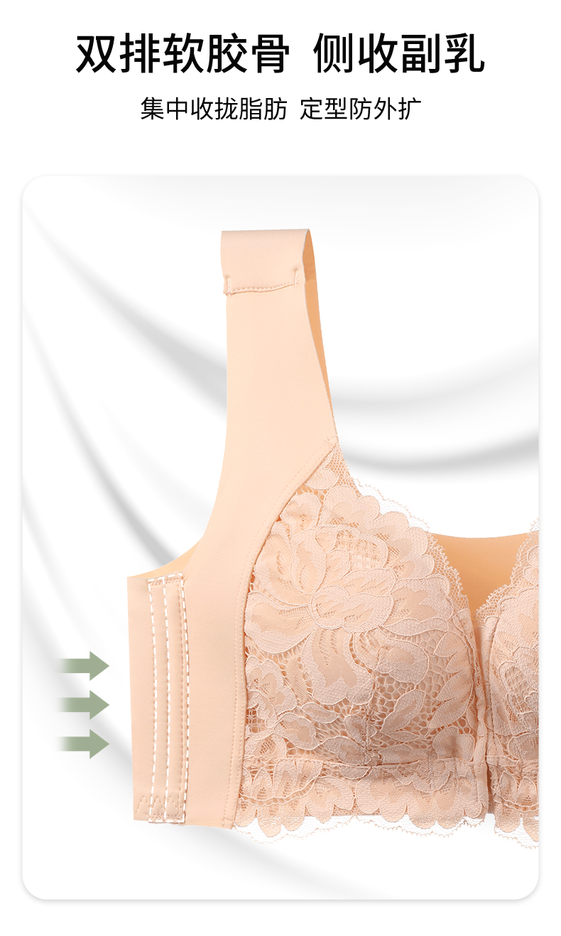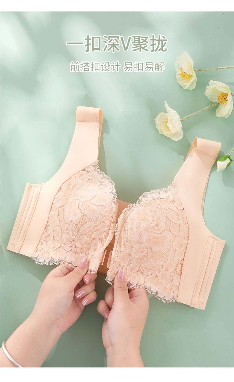 雅黛丽内衣女大胸显小前扣式深V聚拢文胸无钢圈收副乳背心式胸罩