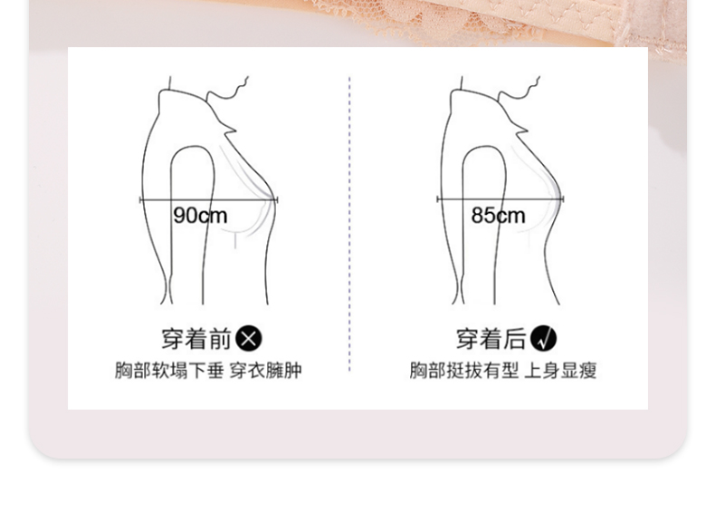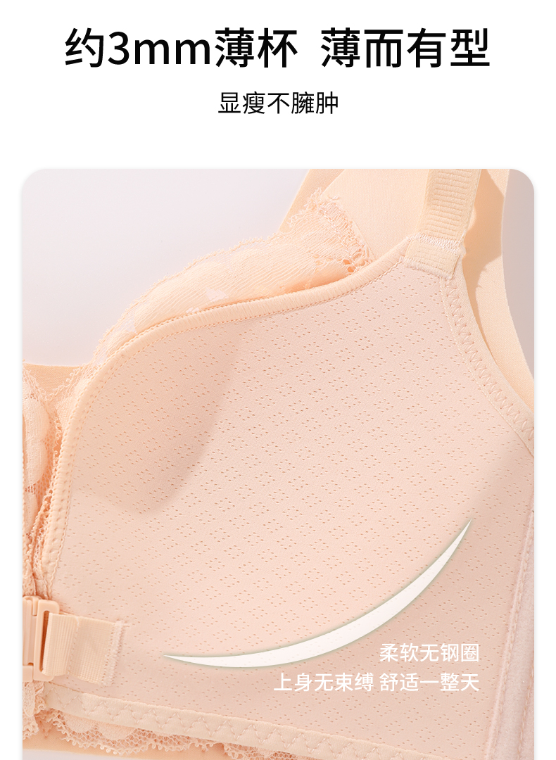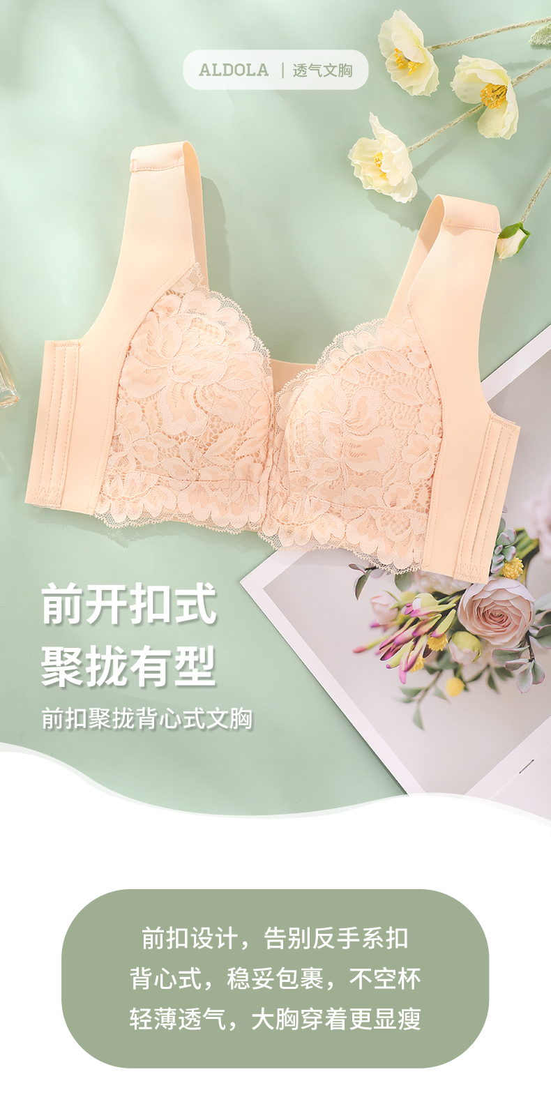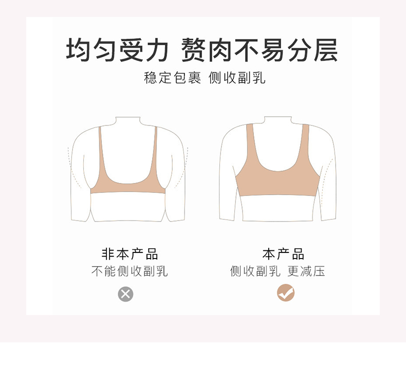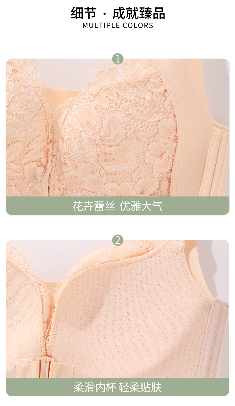 雅黛丽内衣女大胸显小前扣式深V聚拢文胸无钢圈收副乳背心式胸罩