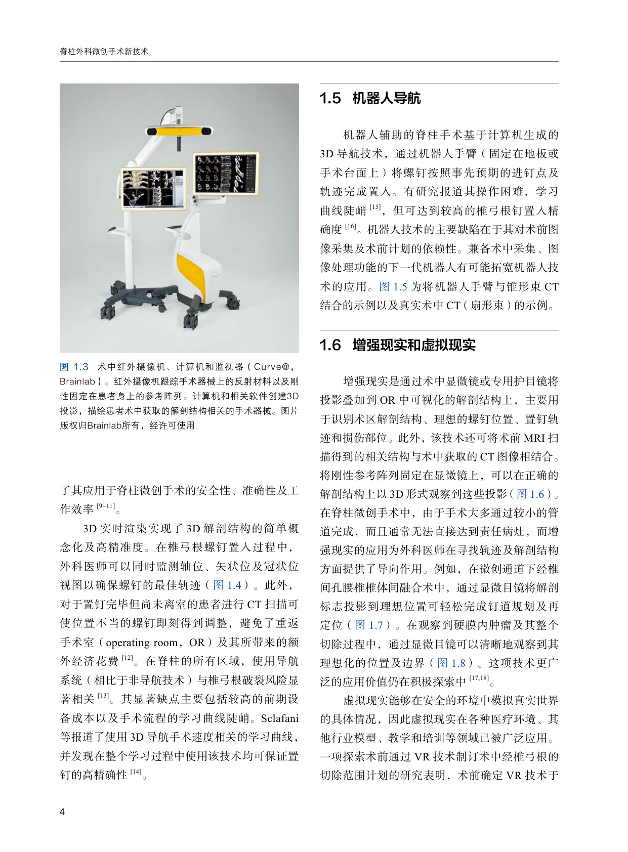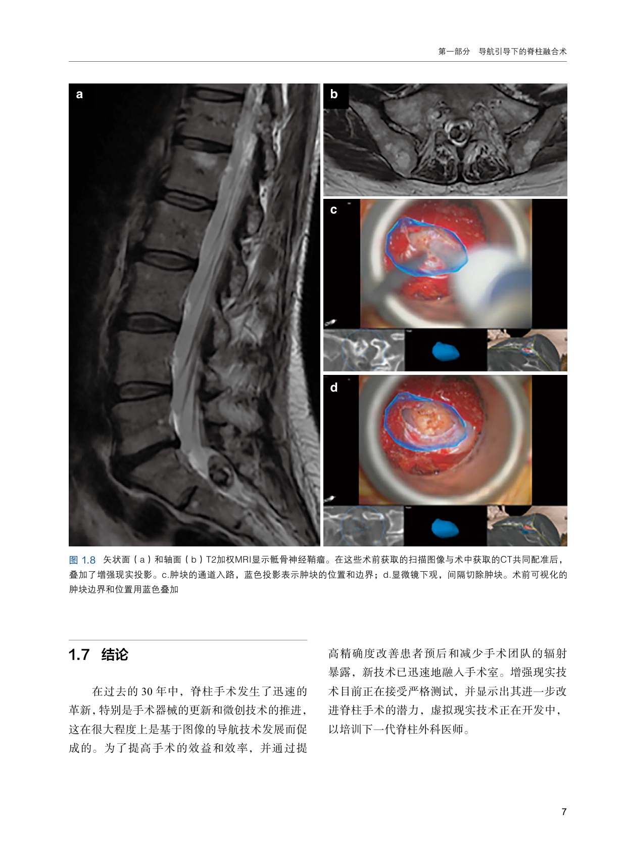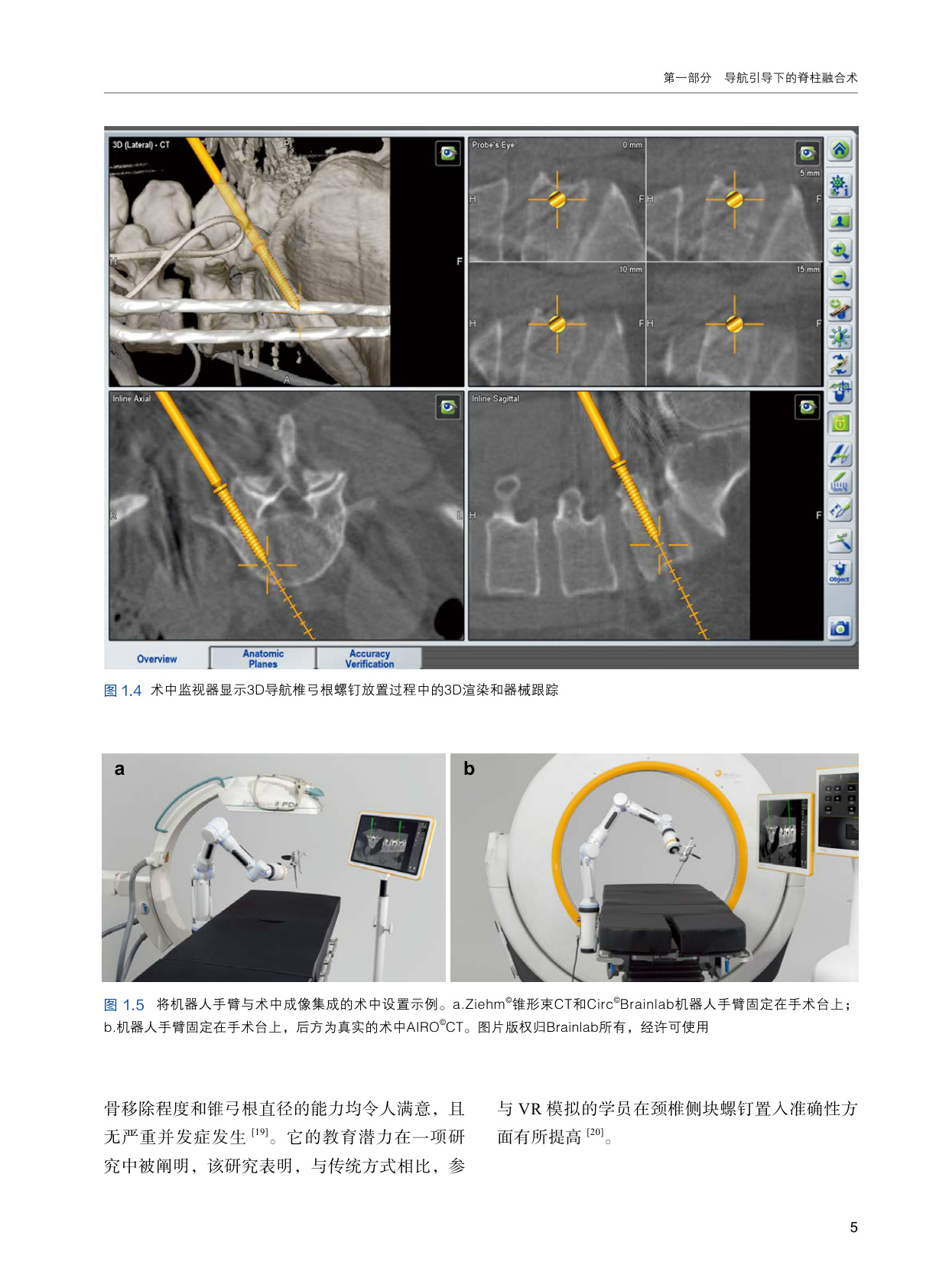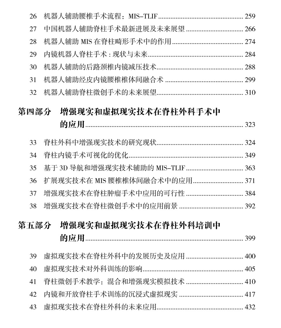 全面覆盖:本书共包括五个部分,内容覆盖了导航引导下的脊柱融合术、导航引导下的脊柱微创减压术、机器人辅助下的脊柱微创手术以及增强现实和虚拟现实技术在脊柱外科手术和培训中的应用等内容。