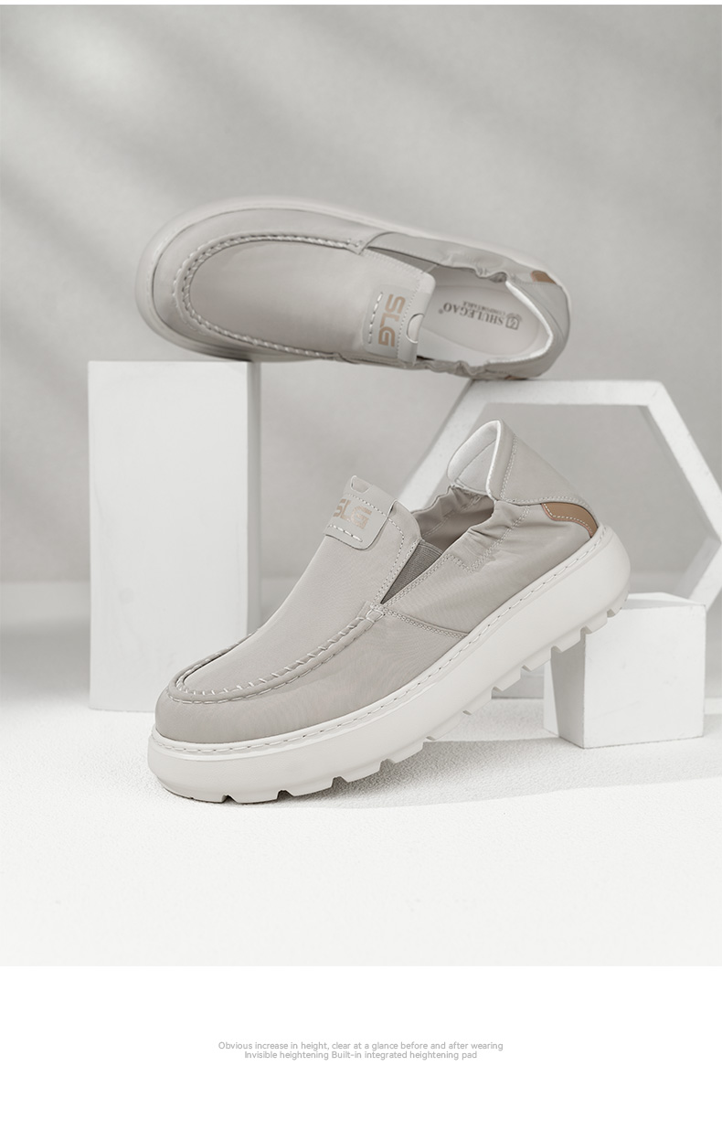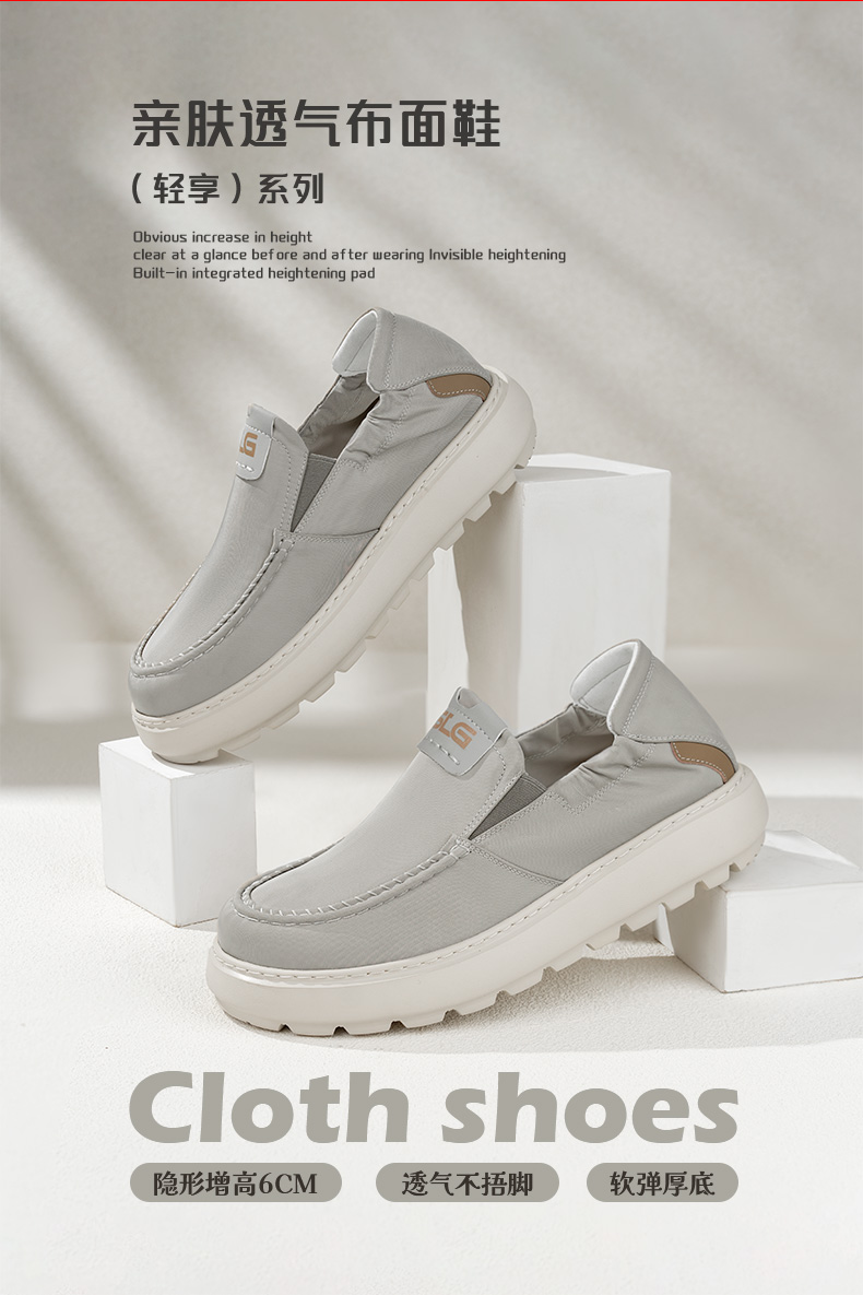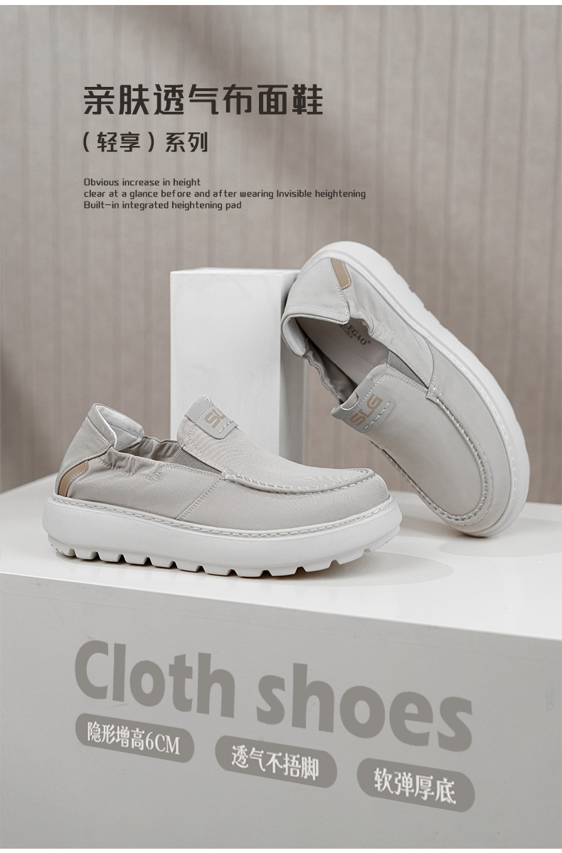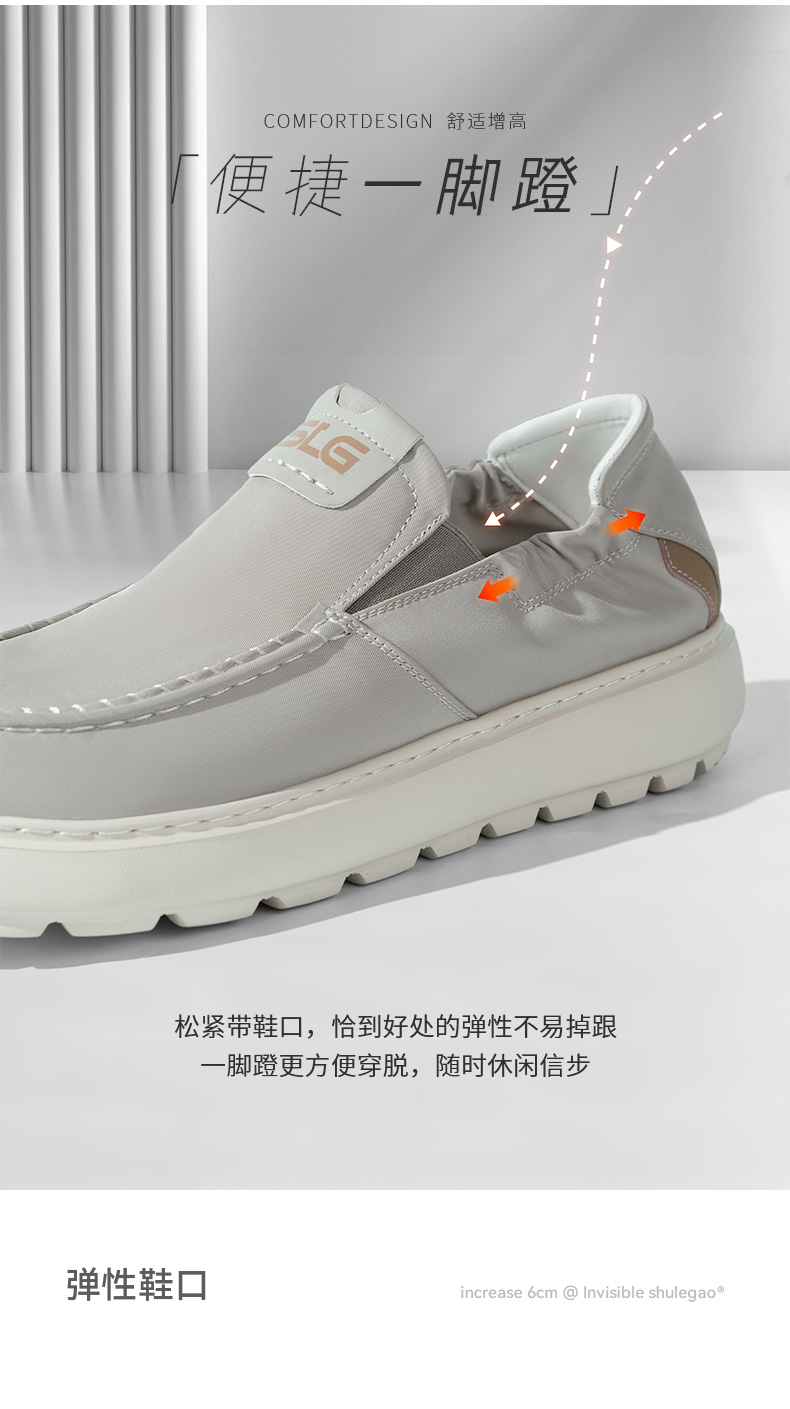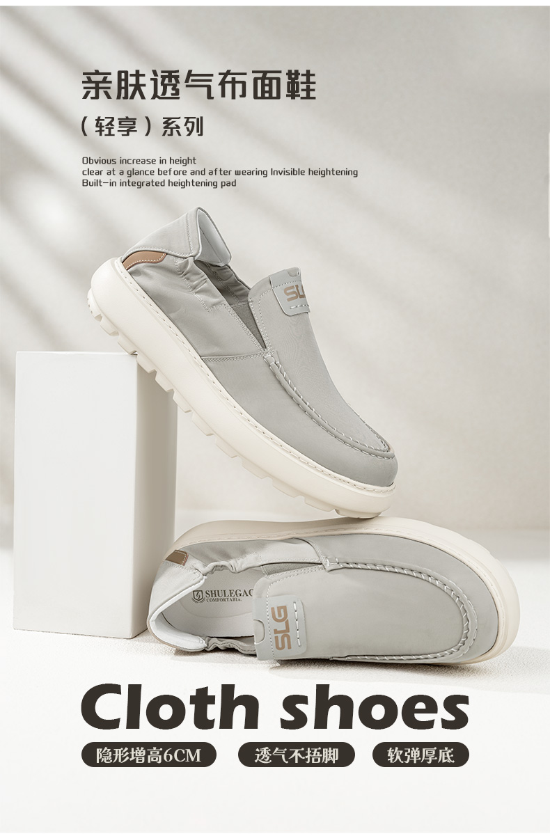 舒乐高鞋子男鞋隐形内增高6cm休闲鞋男款一脚蹬帆布鞋透气懒人鞋