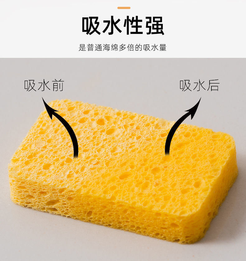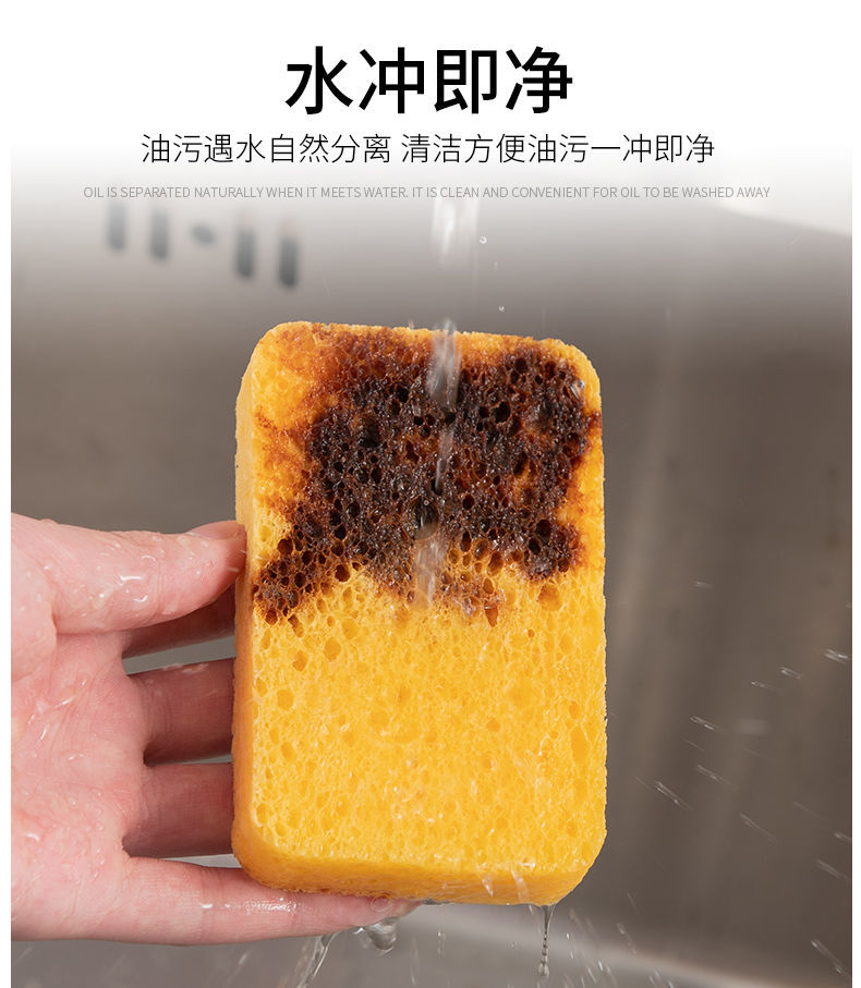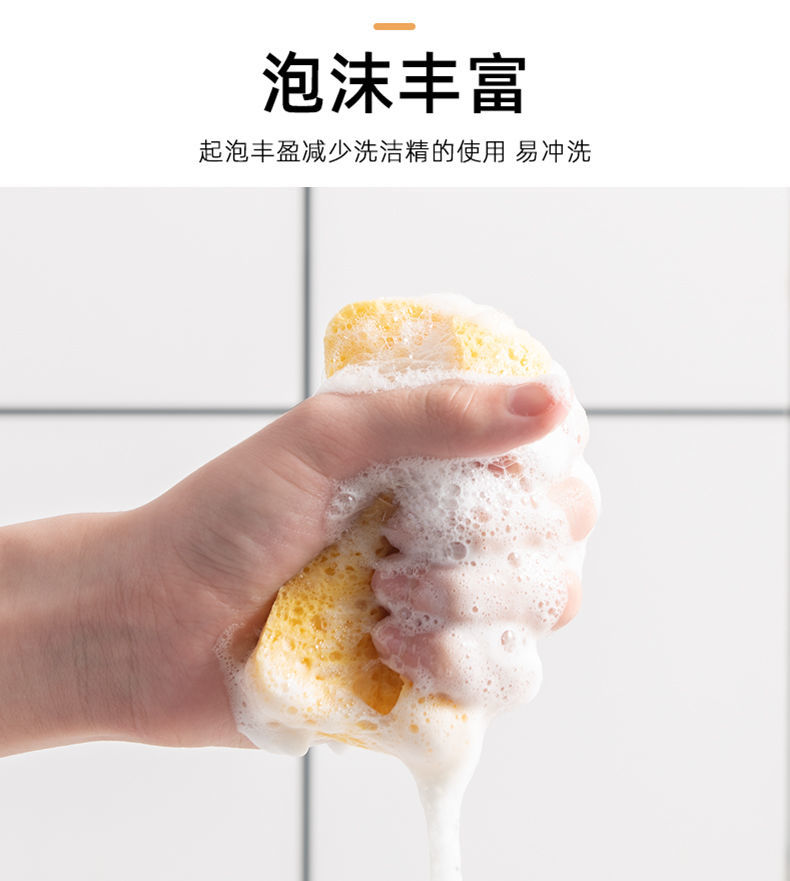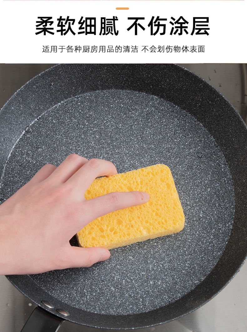 【8片装】洗碗海绵木浆棉 厨房用品不沾油木浆海绵块吸水清洁工具