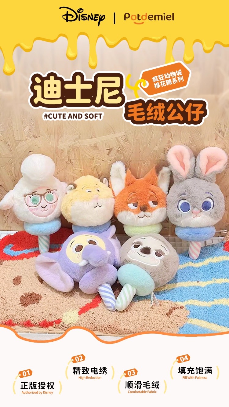 potdemiel蜂蜜罐 疯狂动物城 棉花糖系列 毛绒公仔