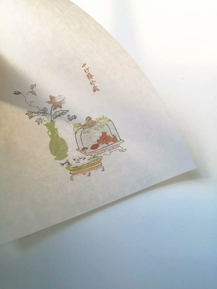 一枚拱花笺,图样选自古代最著名的《十竹斋笺谱》,完美复