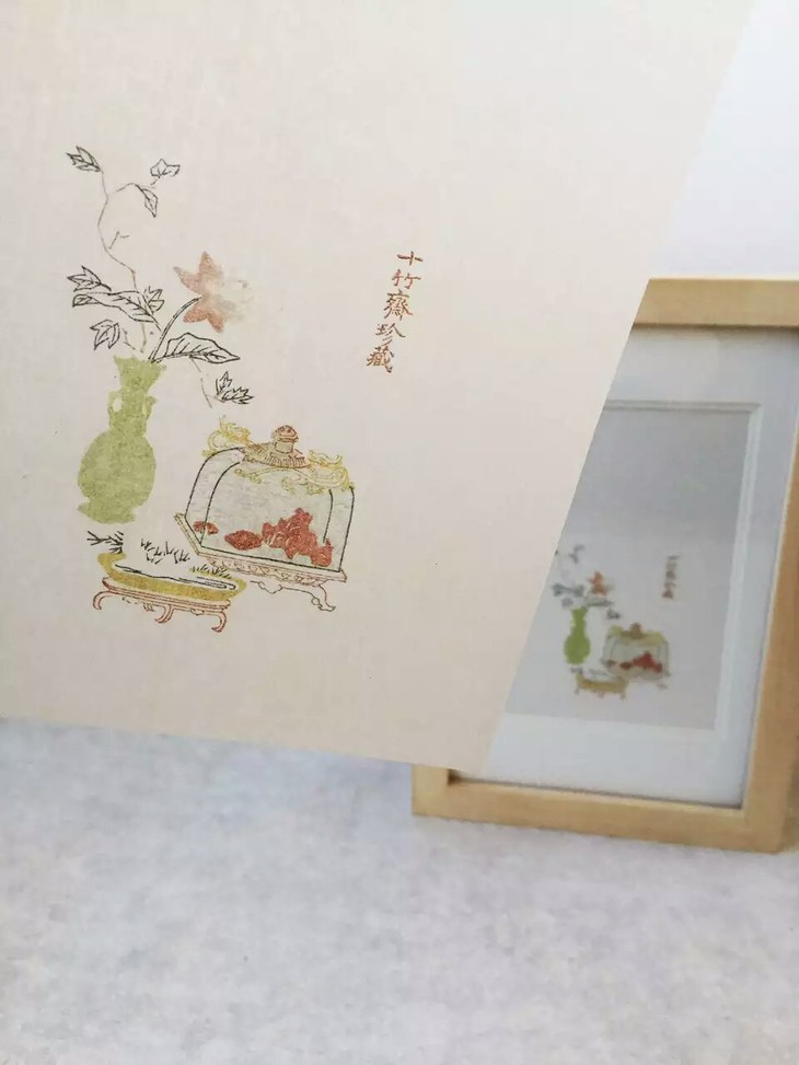 制饾版优雅色调,版画家就拱花部分手工画版,制作拱花版,