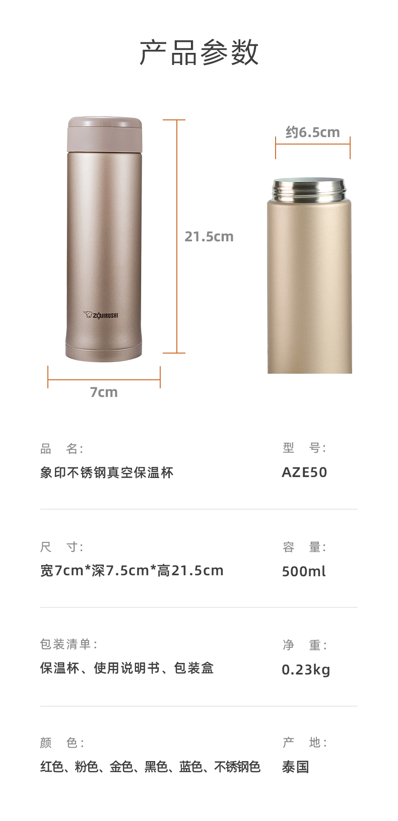 日本 象印 便携泡茶保温杯 500ml