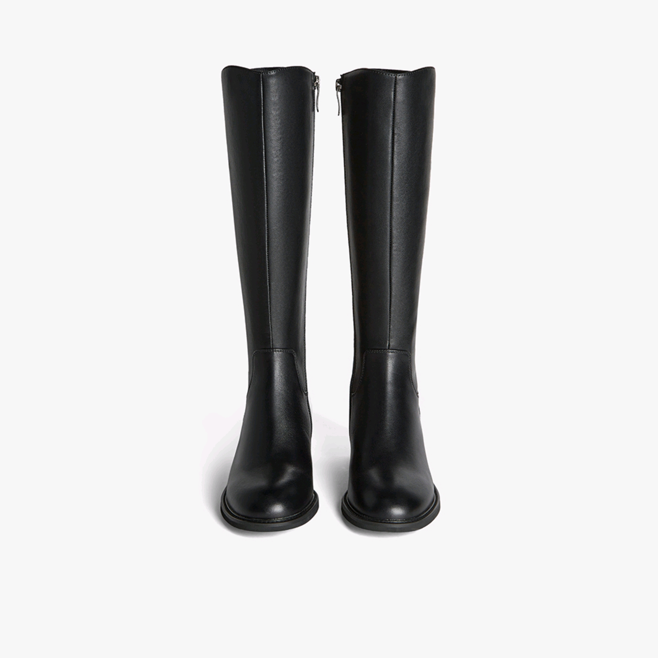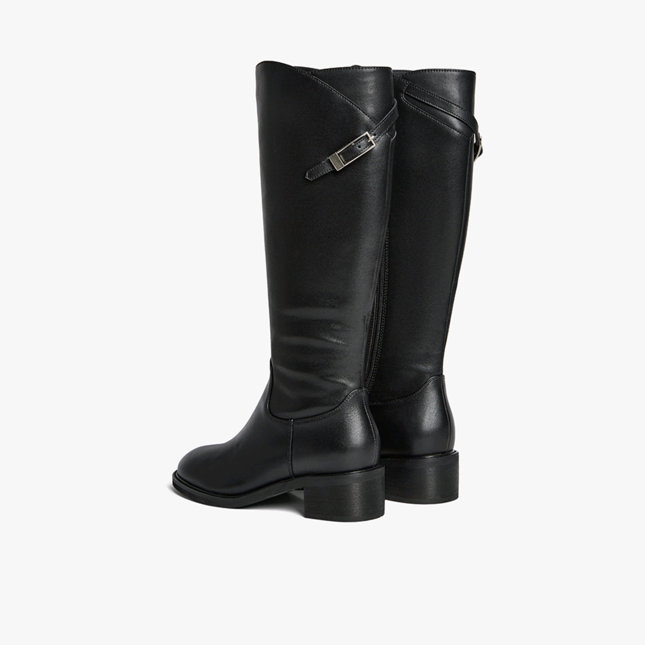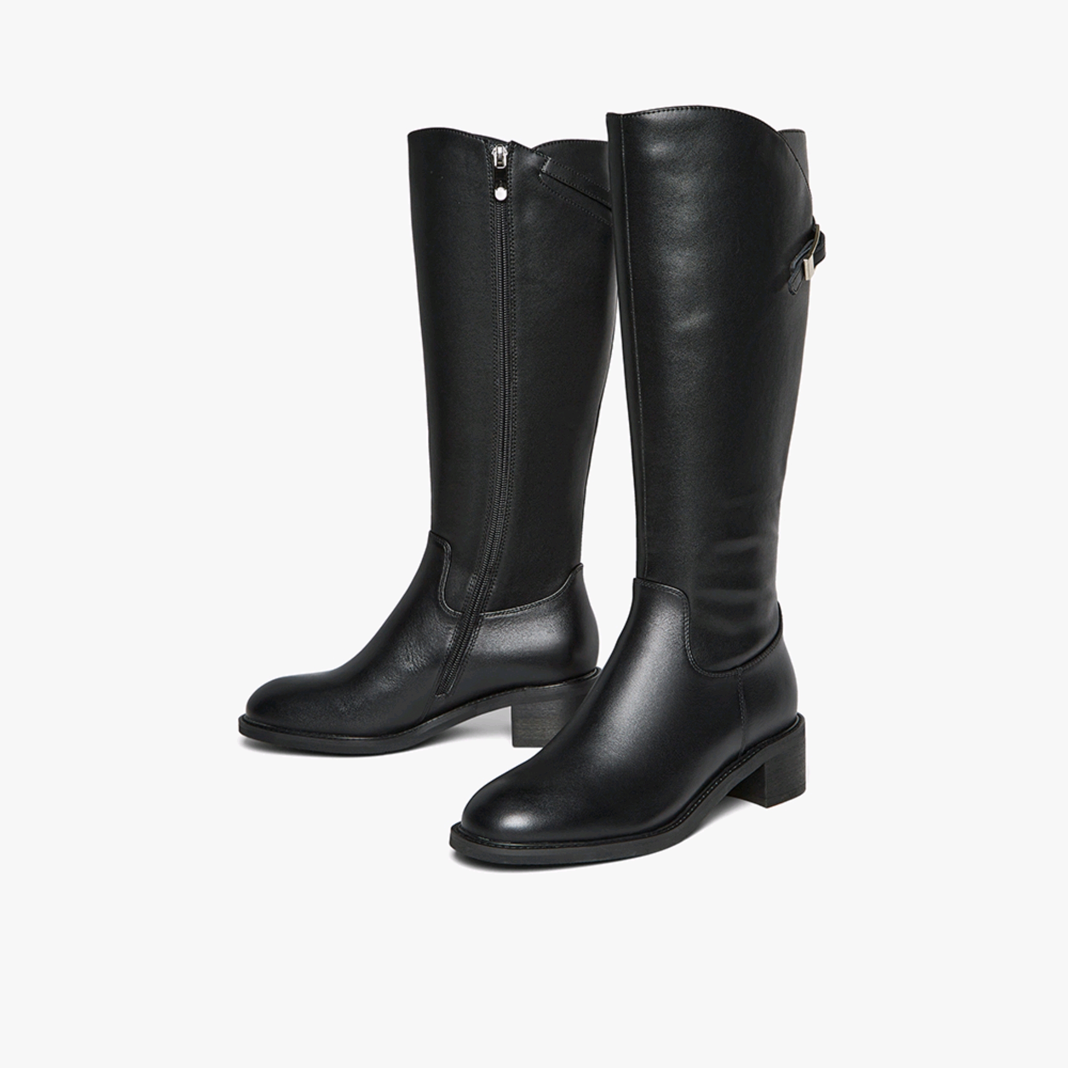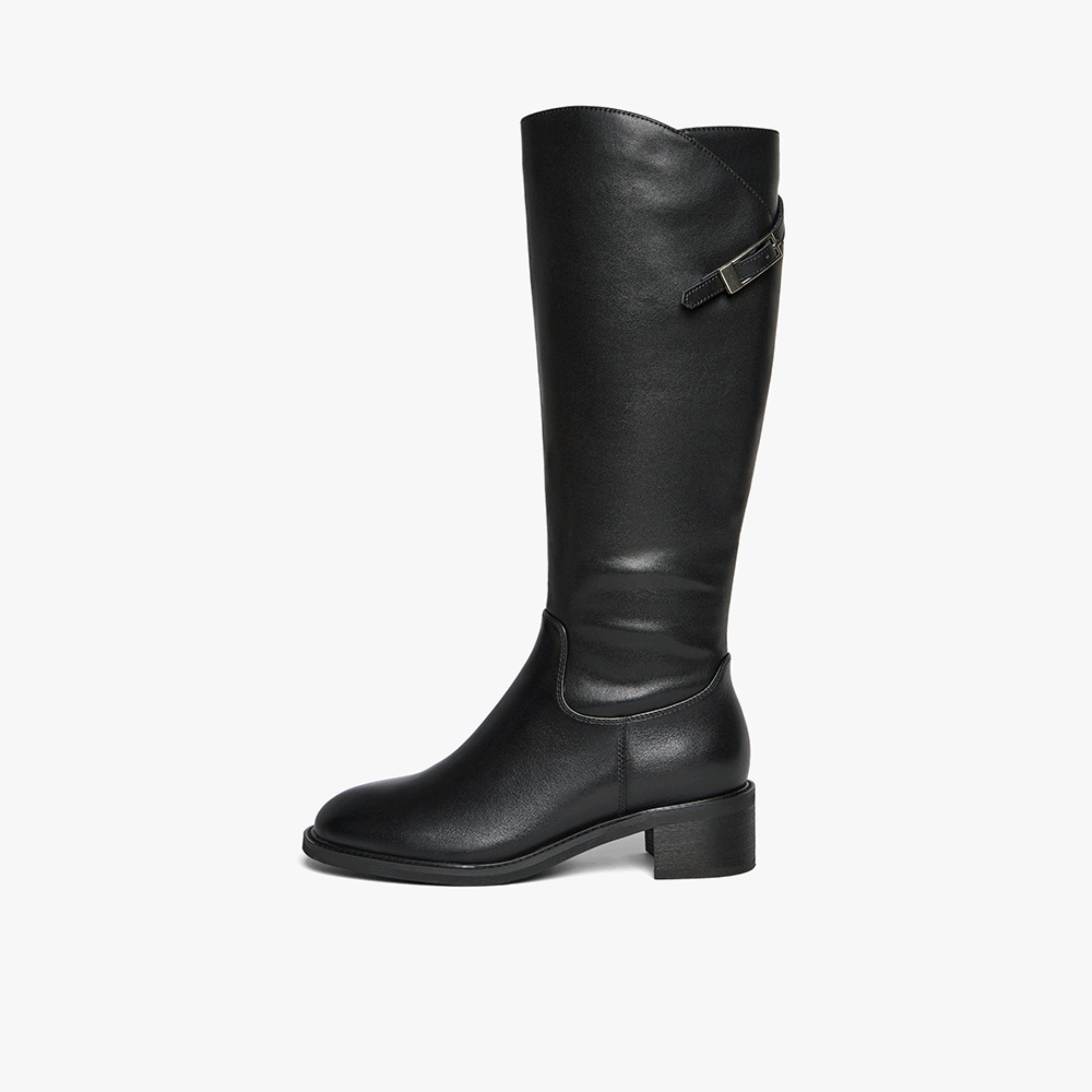 【云粉节】BF楼百思图25冬新款牛皮黑色骑士靴通勤粗跟女大筒围高筒长靴AX892DG5吊牌价1699.现价699