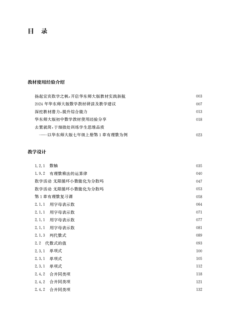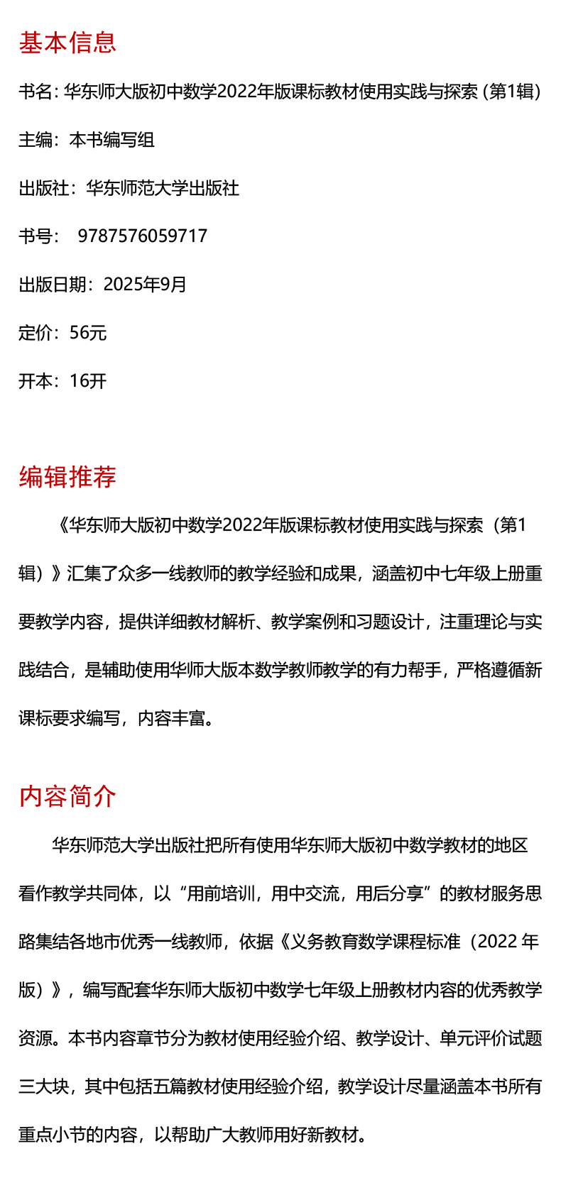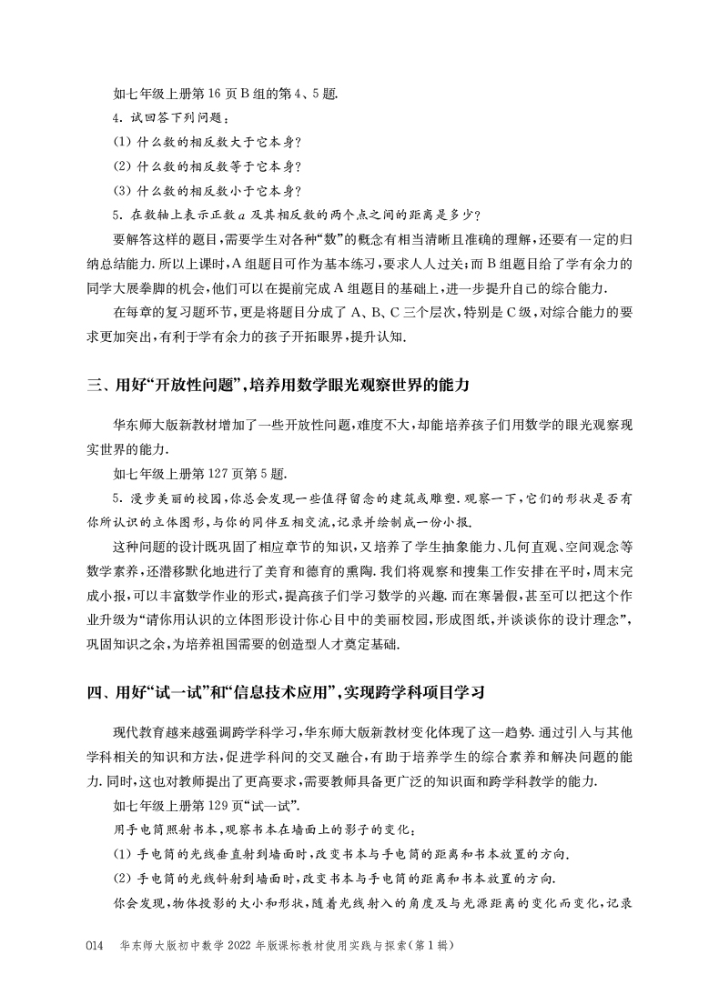 华东师大版初中数学2022年版课标教材 使用实践与探索 第1辑