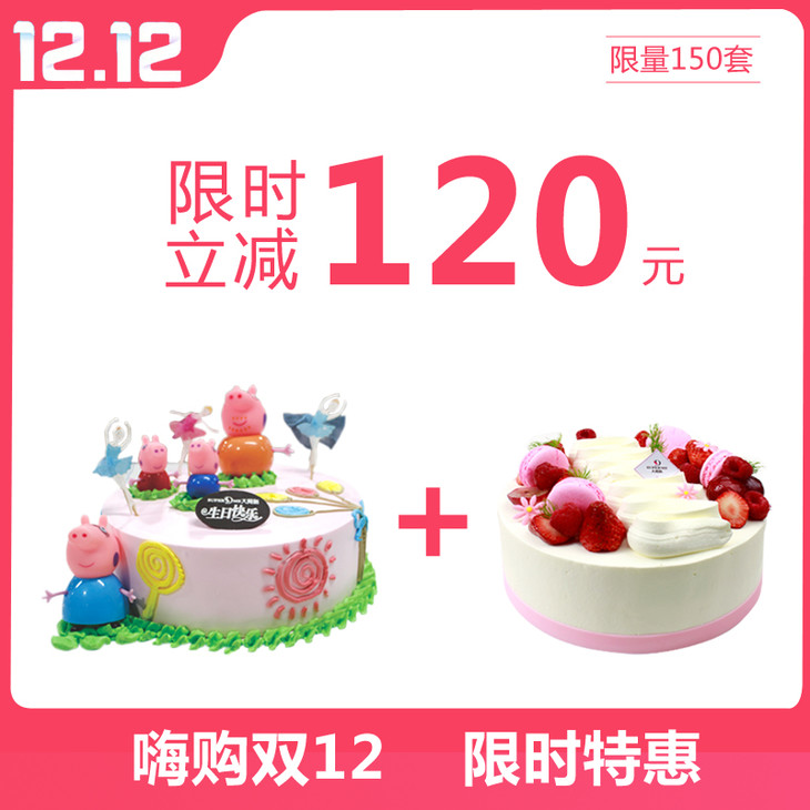 【双十二特惠】立减120元,抢购原价342元8英寸蛋糕2个(乐绵绵8英寸+小猪佩奇8英寸)