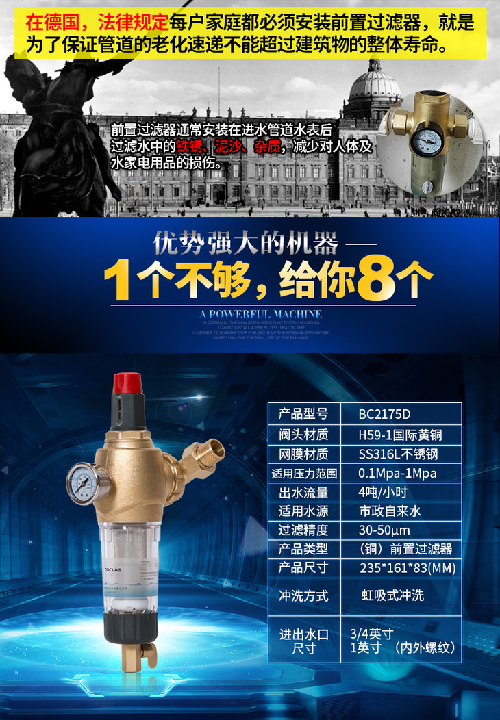 Toclas 托客乐思 前置过滤器-BC2175D|精密控制压万向中央净水机