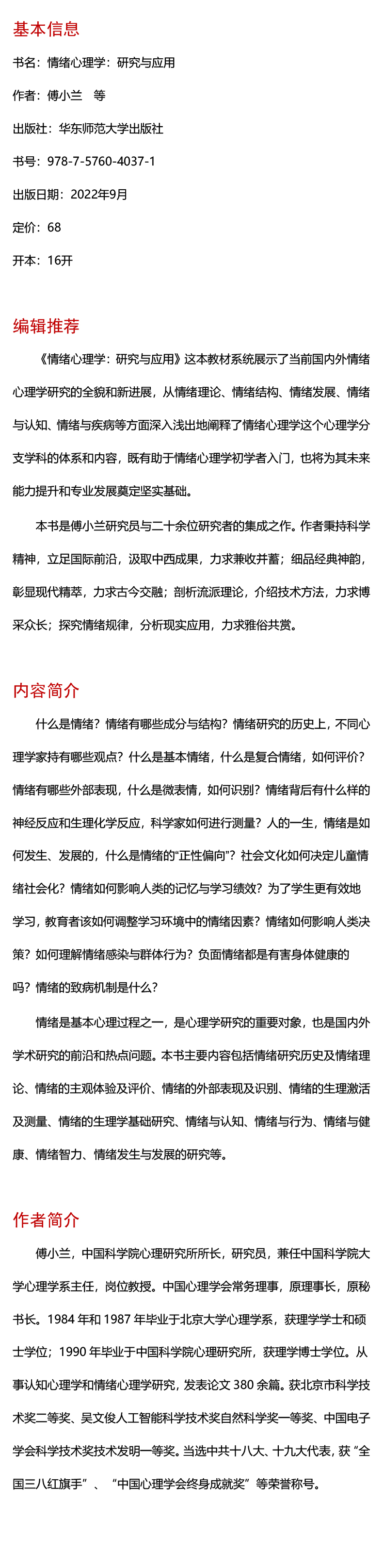 情绪心理学 研究与应用 傅小兰 科学解读人类情绪