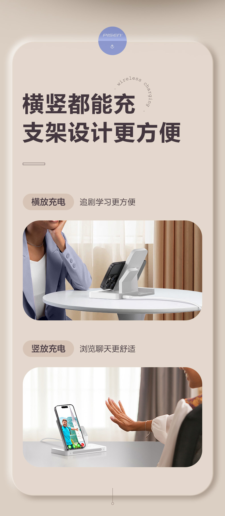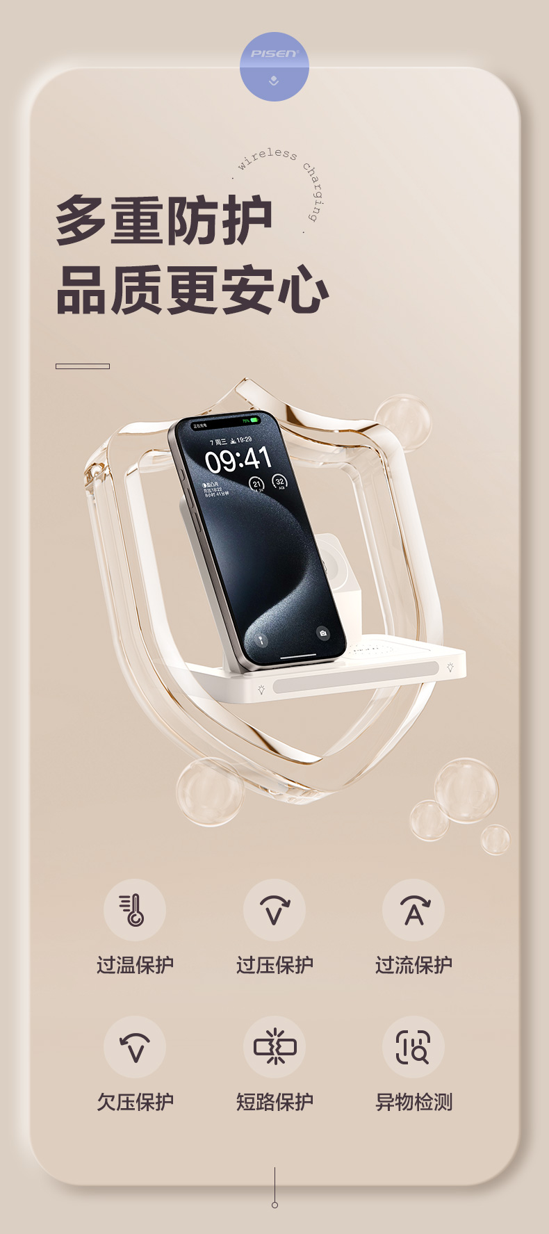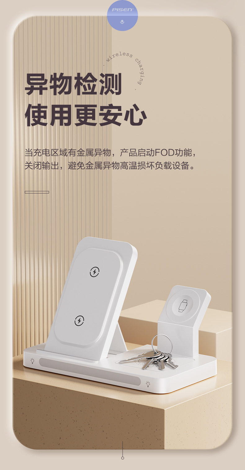 品胜 多功能三合一折叠无线充电器(夜灯版) 无线底座适用于苹果14手机苹果手表充电苹果蓝牙耳机无线充电