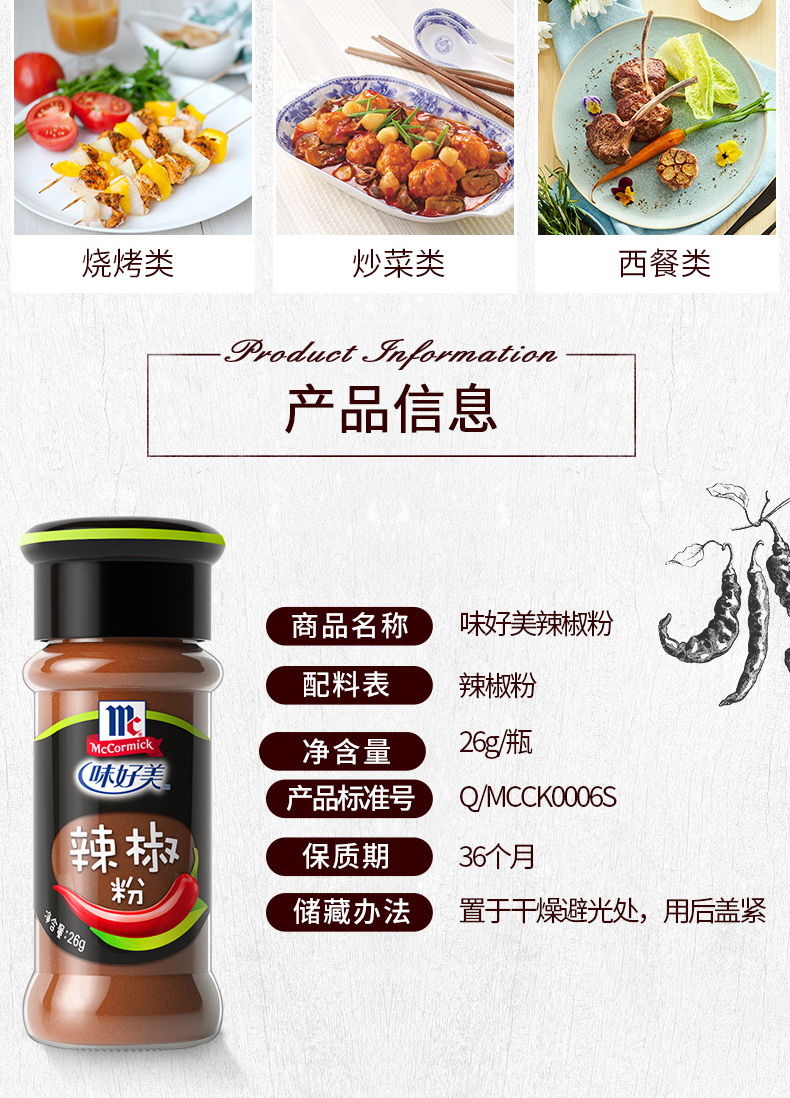 味好美辣椒粉26g/瓶味 烤肉撒料炒菜调料小份小瓶调味料
