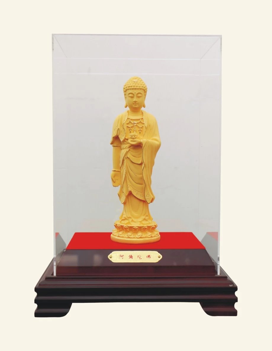 宝像内部由紫铜铸造,表面采用沙金工艺,经多道工序精工制作而成。