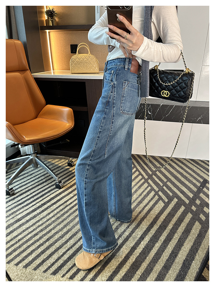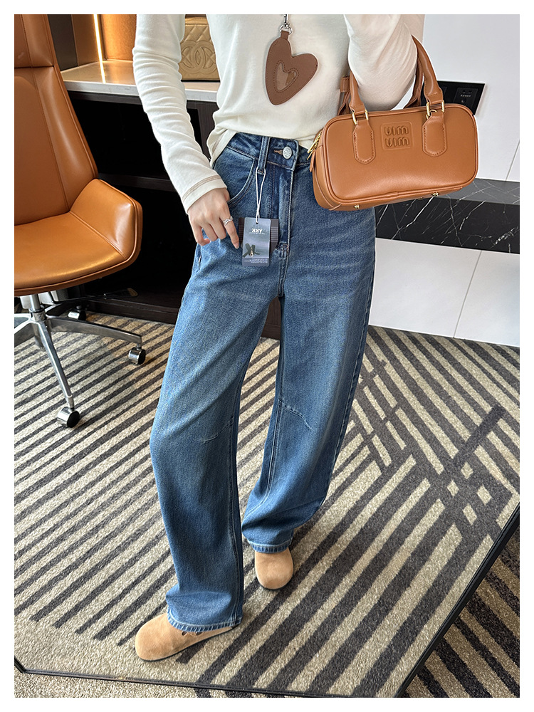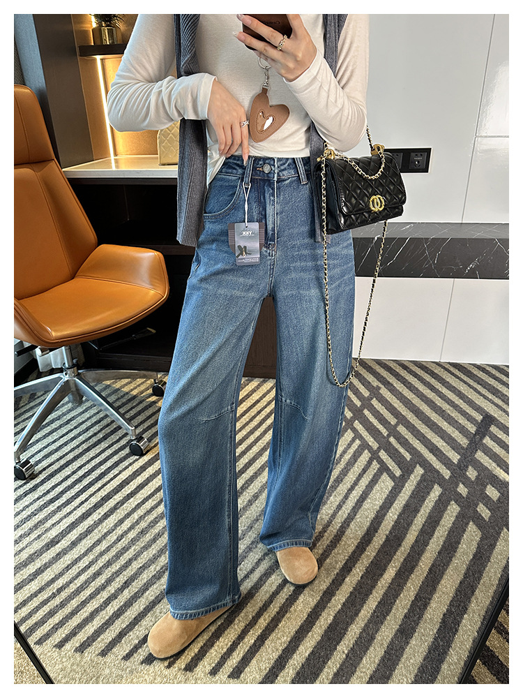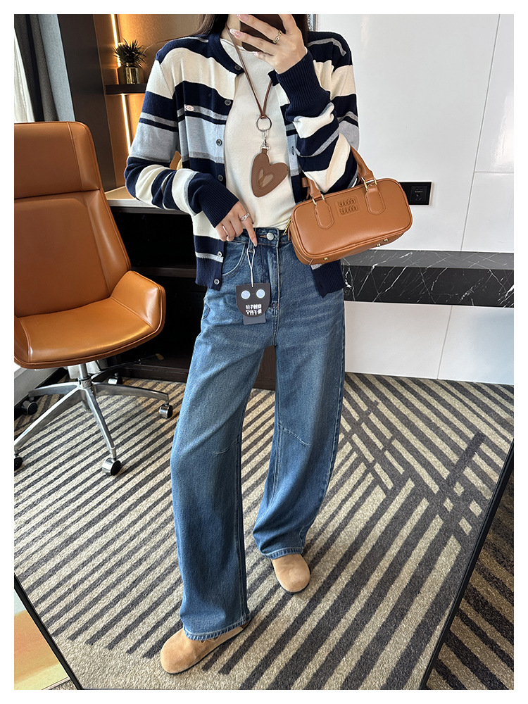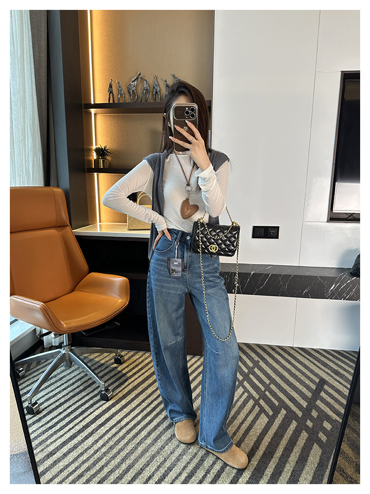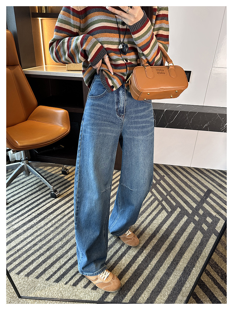 【一套都有,视觉感爆增】2025高腰阔腿镰刀牛仔裤女2025新秋宽松显瘦百搭香蕉裤!羊毛毛衣!