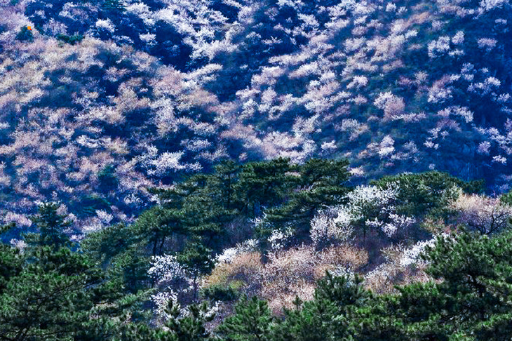 有人说,银山的美源于群山环绕,苍松翠柏。初夏以后那里的颜色随着树种和季节的变化而呈现浅绿、深绿、红黄等不同色彩。然而,在我的眼里,银山景区给我印象最深的却是那初春时,洒满山谷,遍布沟壑,一枝枝一串串,含英吐蕊,竞相开放,把黑的山谷映照得一片明媚的山花!