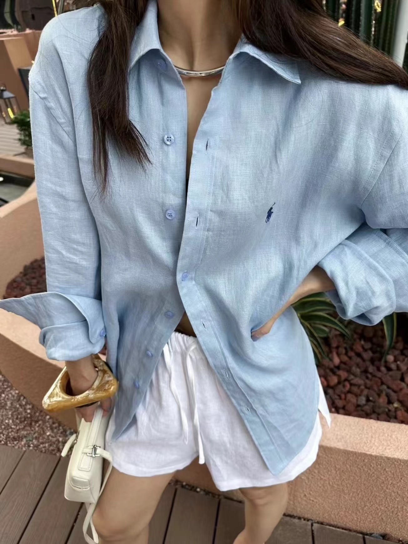 根本不用推就会爆的款!因为面料是比较轻薄的~所以扎进下装也非常 ok!!穿亚麻的季节,就是现在一到春夏交替的季节是zui适合穿亚麻的季节?这是一件适合三季的亚麻衬衫!夏天当防晒衣穿亚麻的轻盈凉爽,衬衫的随性慵懒,简简单单的基础款自然舒服亚麻面料本身自带的皱感,再也不用担心坐下或者躺着的时候衣服会变形不好看了!面料采用60%棉,40%亚麻。使面料更加的柔软亲肤,吸汗透气性更胜一筹?这款真的太太太适合夏天不想露手臂的姐妹,防晒防晒防晒,不仅具有功能性,而且拉夫的衬衫搭配出来非常韩系!防晒又时尚啊小宽松版型 遮肉显瘦,一件衬衫可以穿出N种搭配!通勤或休闲 法式或温柔 拿捏多种风格!!相信我姐妹,当你衣橱里款式越来越多,那么说明你的衣着品味又上了一个台阶