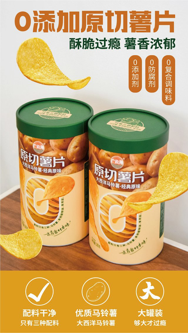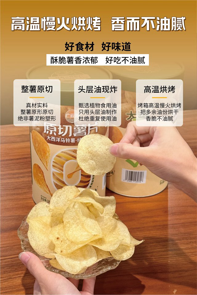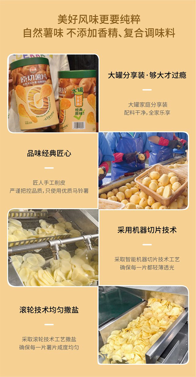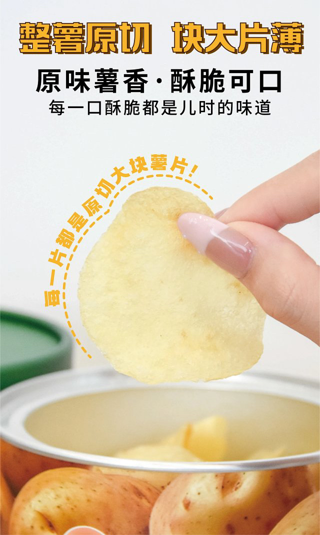 【妈妈放心给孩子吃的薯片】原切薯片超大装 配料只有:马铃薯、食用油、食用盐 0防腐剂0香精好吃不齁咸