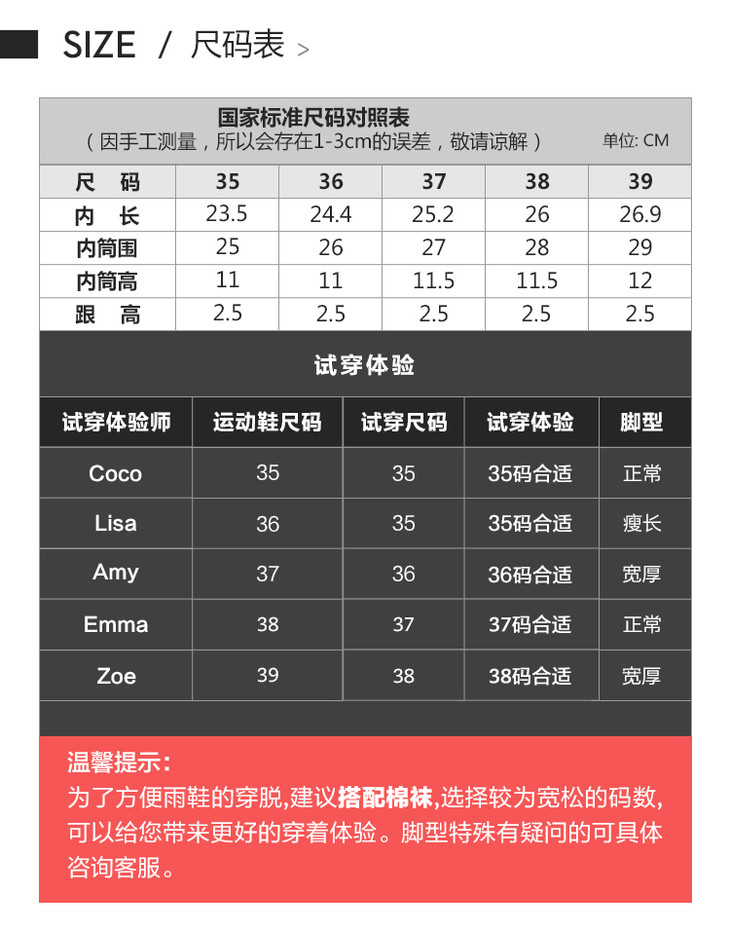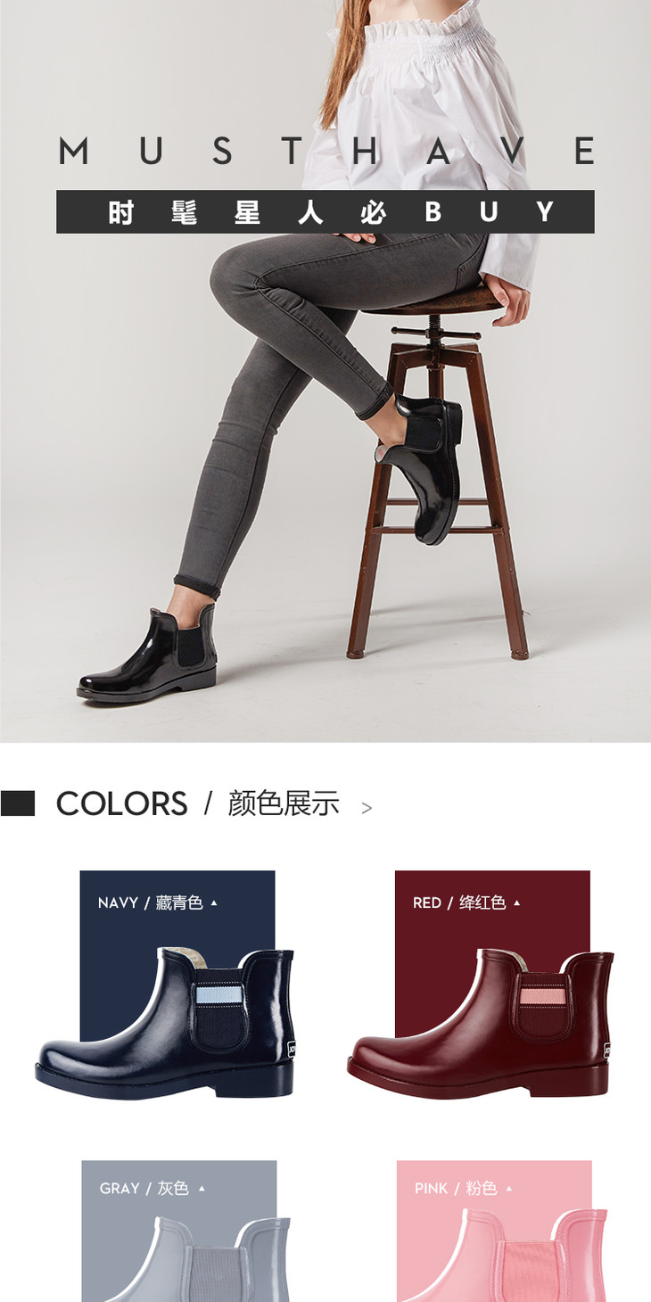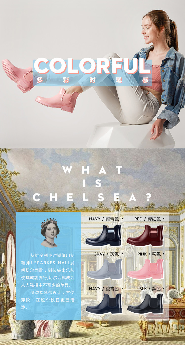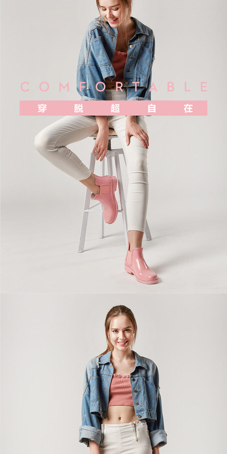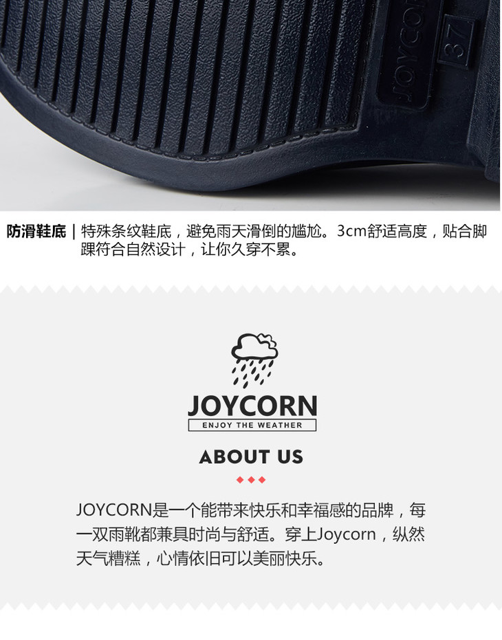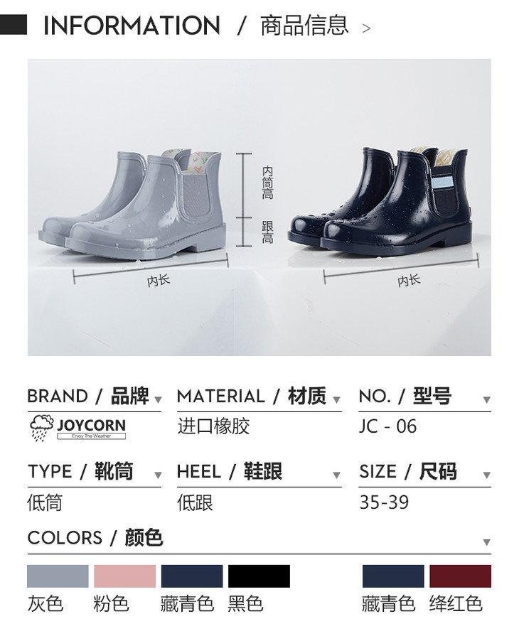 Joy Corn春季切尔西成人雨鞋防滑短筒纯色防水鞋女士橡胶雨靴胶鞋