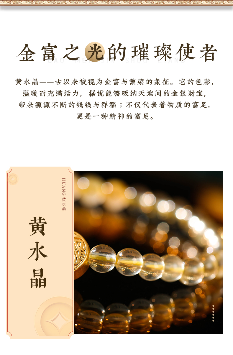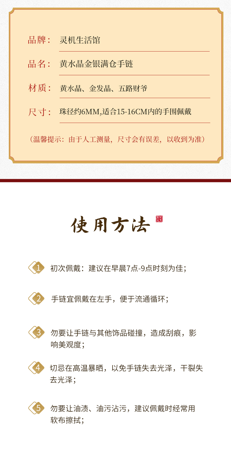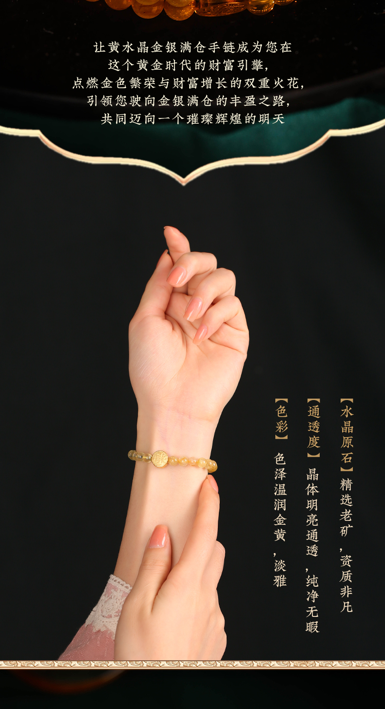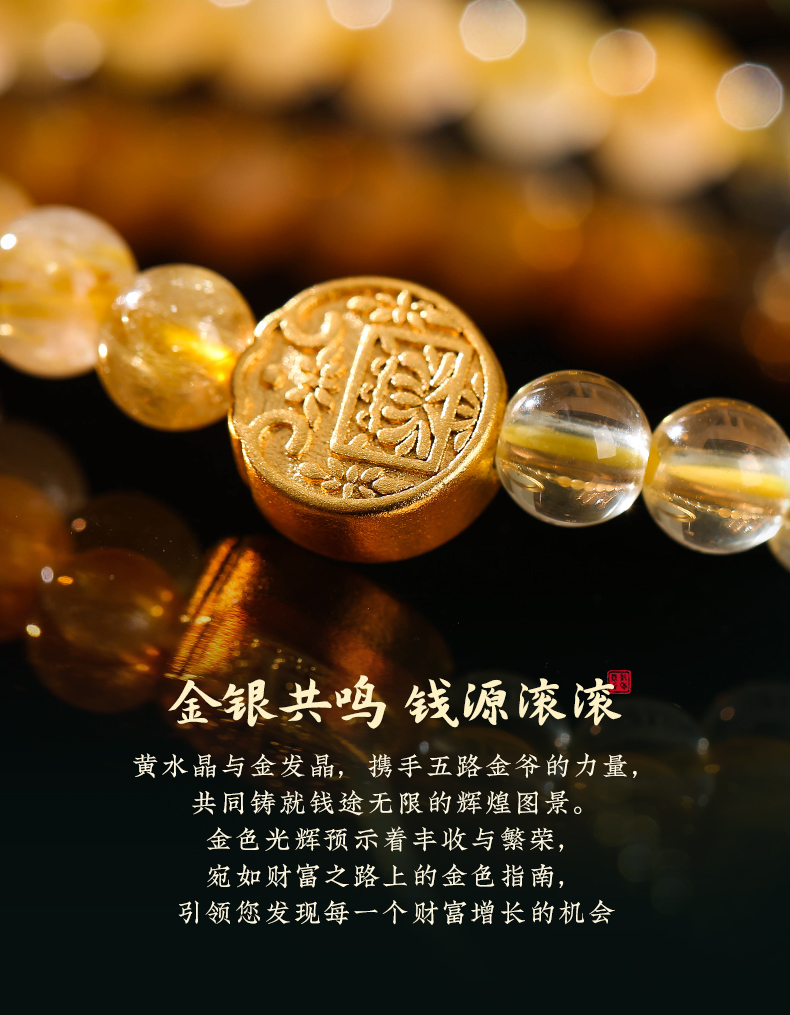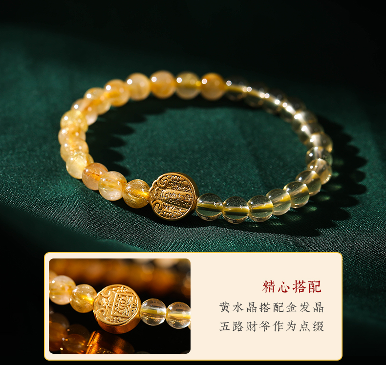 灵机生活馆 黄水晶金银满仓手链 五路财神金发晶黄水晶手串