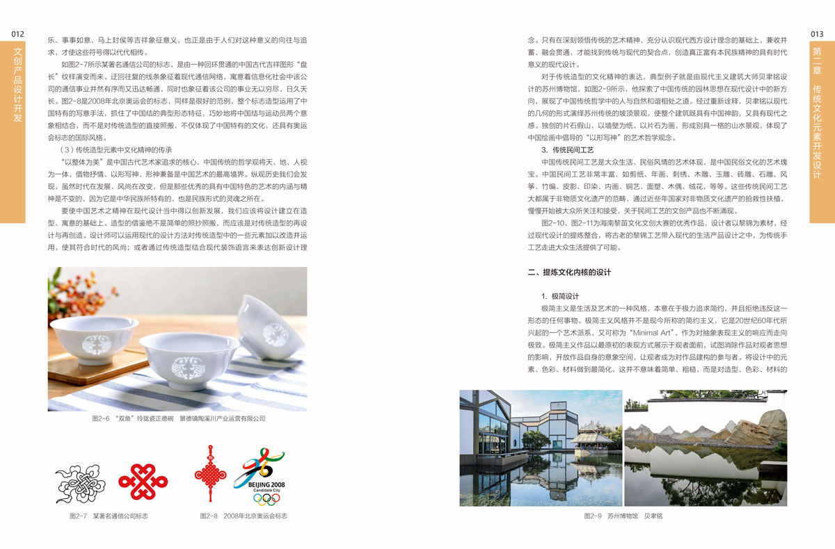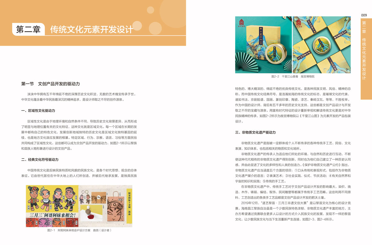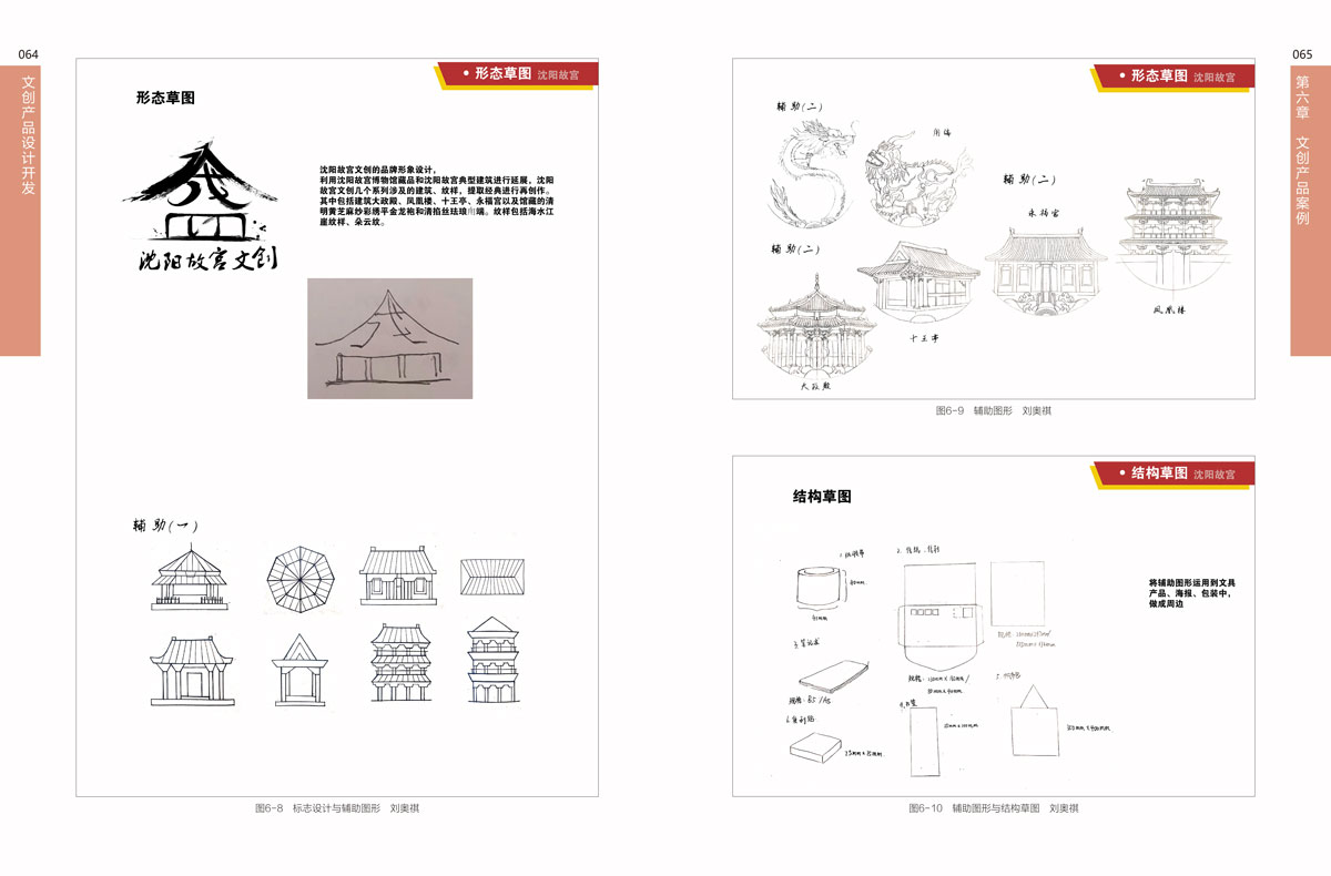 本书以产品设计和公共艺术专业课程为基础,结合非物质文化遗产与当地特色文化设计课程教学目标与实施方案,通过每一届产品设计与公共艺术专业教学的不断积累,总结教学方法与经验。结合当下国家鼓励大学生创新创业与传统文化传承创新的文化政策,不断改进教学方式与方法,取得了不错的教学反响。例如文创产品设计课程与沈阳故宫联合设计教学,为沈阳故宫设计制作具有沈阳故宫文化特色的文创产品,大大激发了学生的学习热情,产生创新创业的萌芽和动力,同时我们的教学成果也得到沈阳故宫方面的认可与支持,为本地文化创新助力。