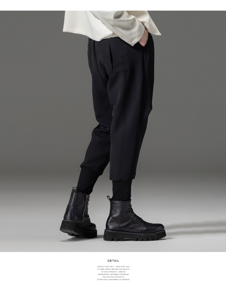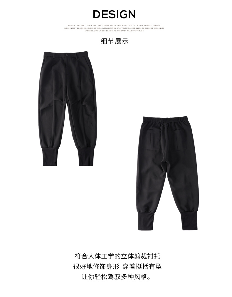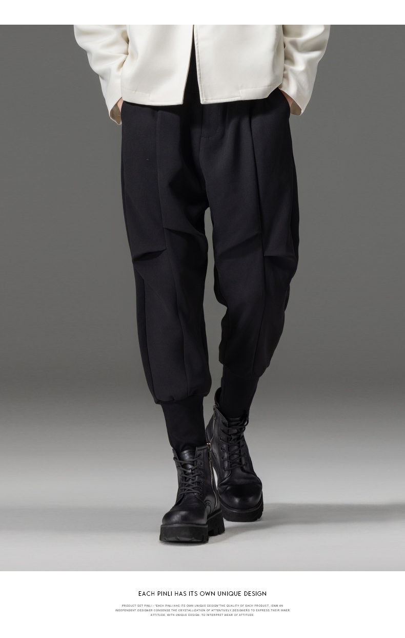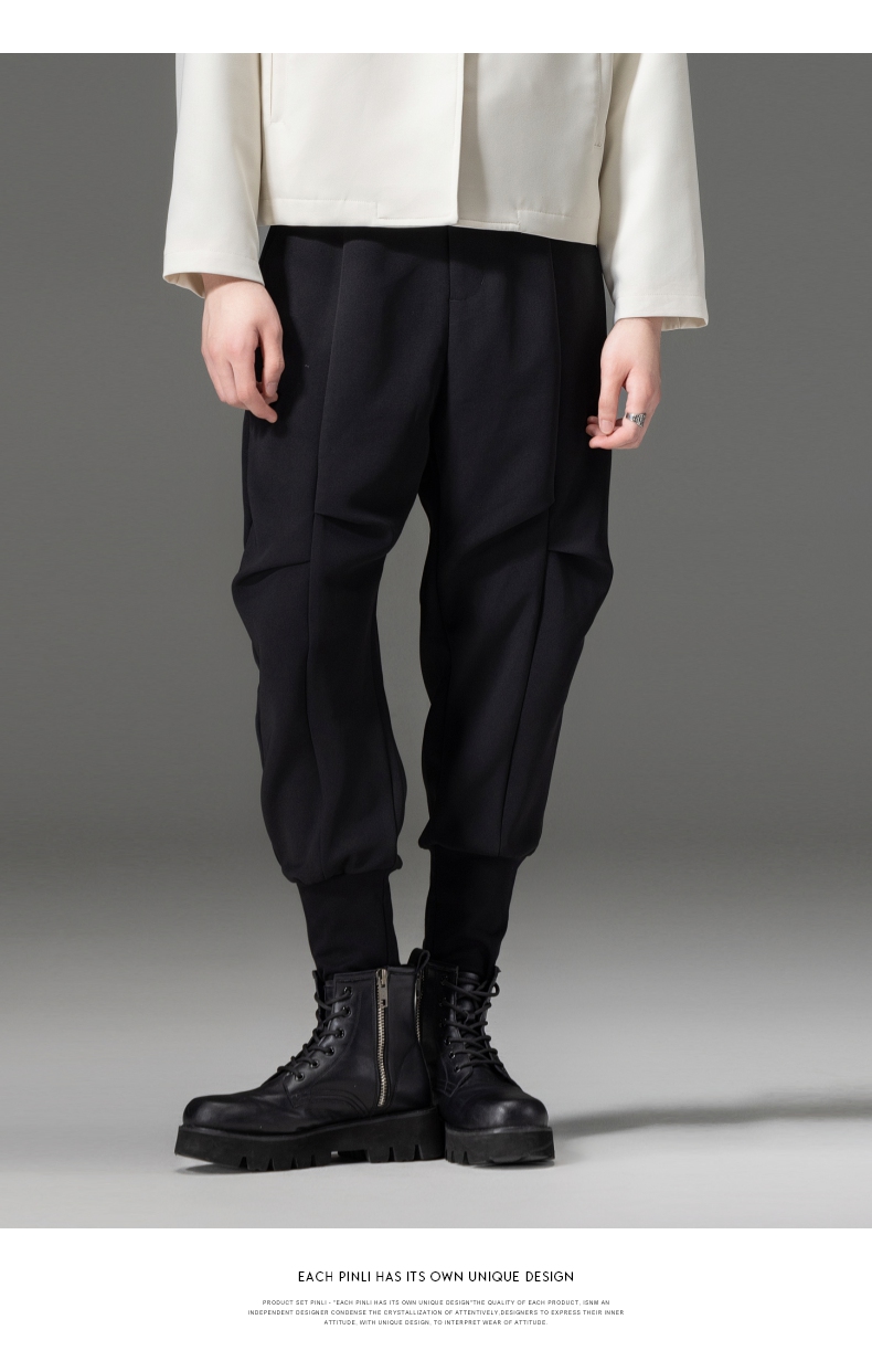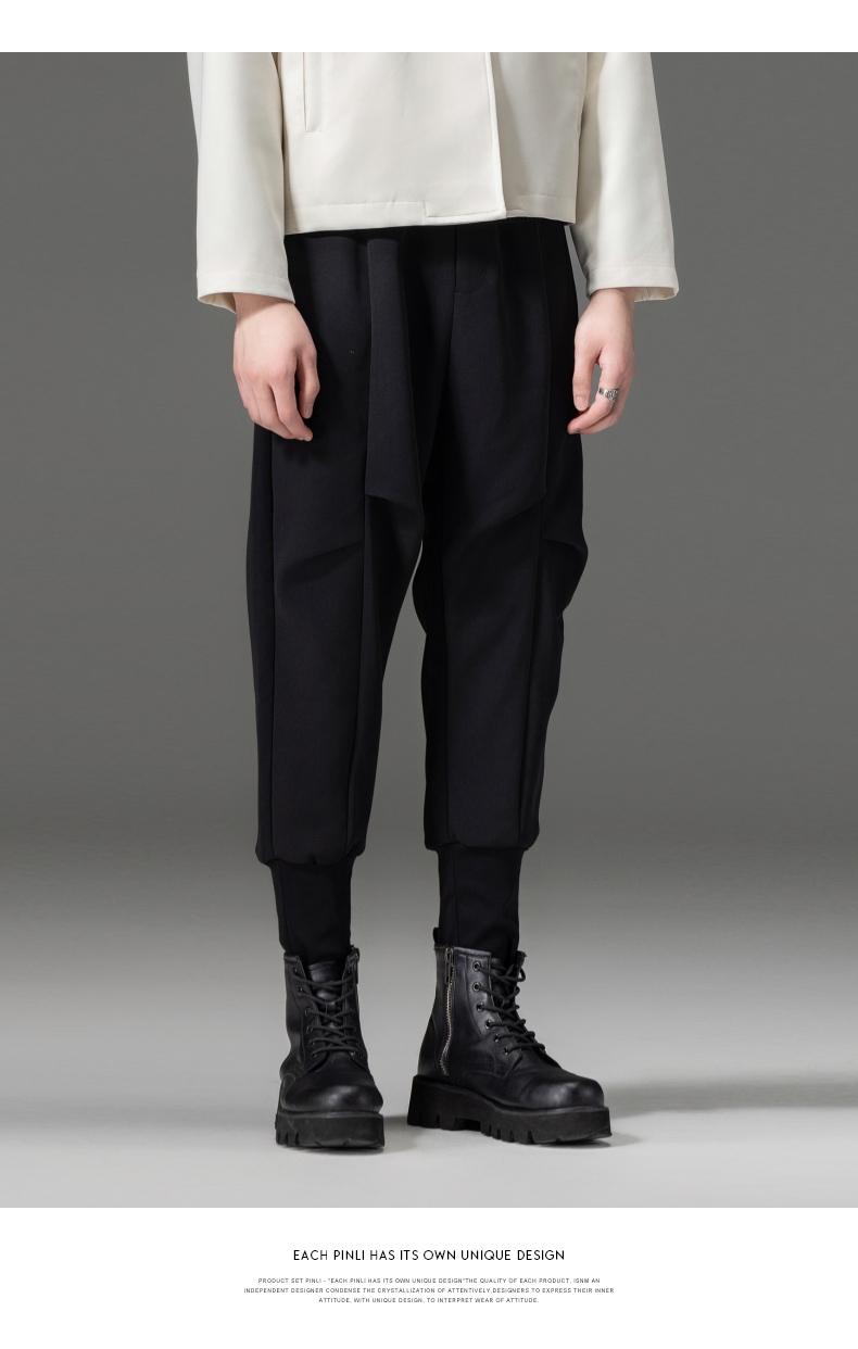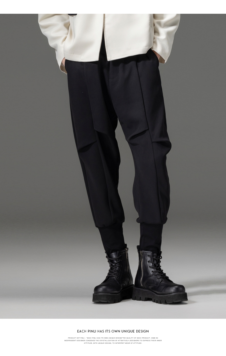 PINLI品立春装新品黑色小脚裤子束脚男士休闲长裤B233117017