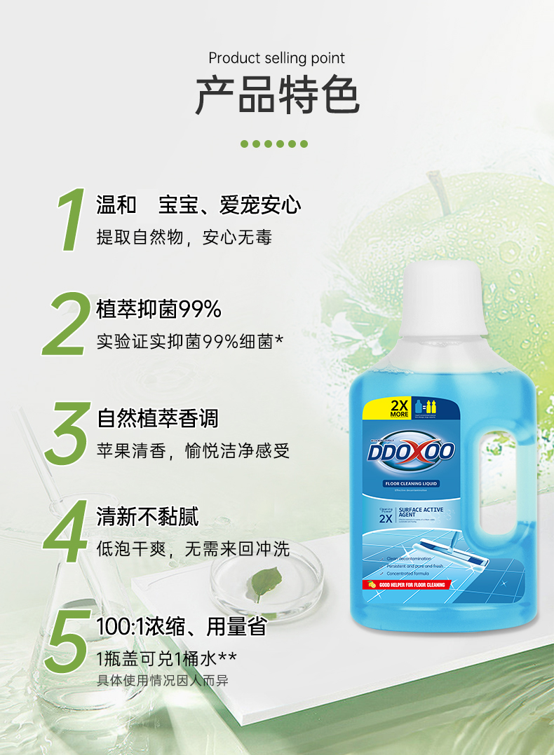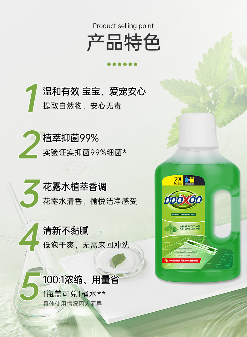 【3瓶装】DDOXOO地板清洁剂 500ml/瓶*3 配方温和,宝宝、宠物家庭可用;植萃精华,99%yi菌;花露水清香,清新不黏腻,不用来回冲洗;100:1浓缩,用量更省