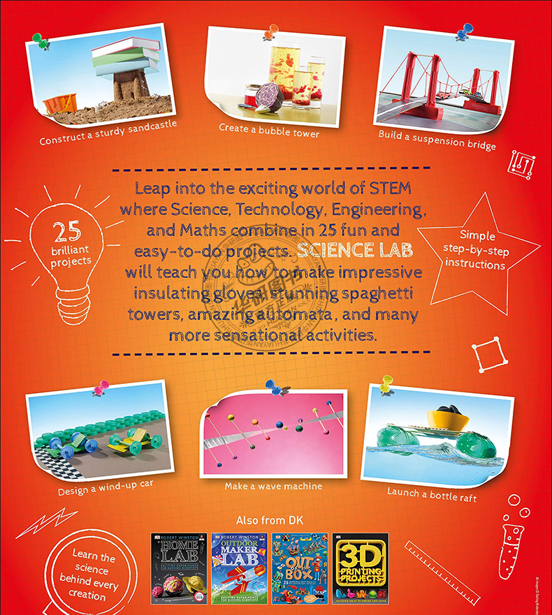 From racing wind-up cars and building a sturdy sandcastle to creating a wave machine and making music with a homemade guitar, Science Lab is packed with 25 exciting STEM (Science, Technology, Engineering, and Maths) activities. Why do rafts float? How do bridges stay upright? How do seals stay warm? And how can you make a ball levitate? Each activity explores core STEM ideas to help young readers discover the answers to these fascinating questions for themselves.