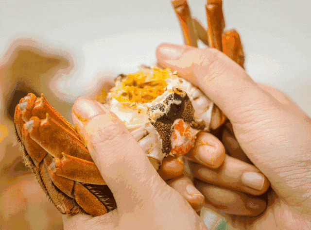 蟹肉口感饱满,爽滑香嫩,蟹膏白如玉、蟹黄颜色如黄金,食用时更是唇齿留香,绝对可称得上为上等好蟹。