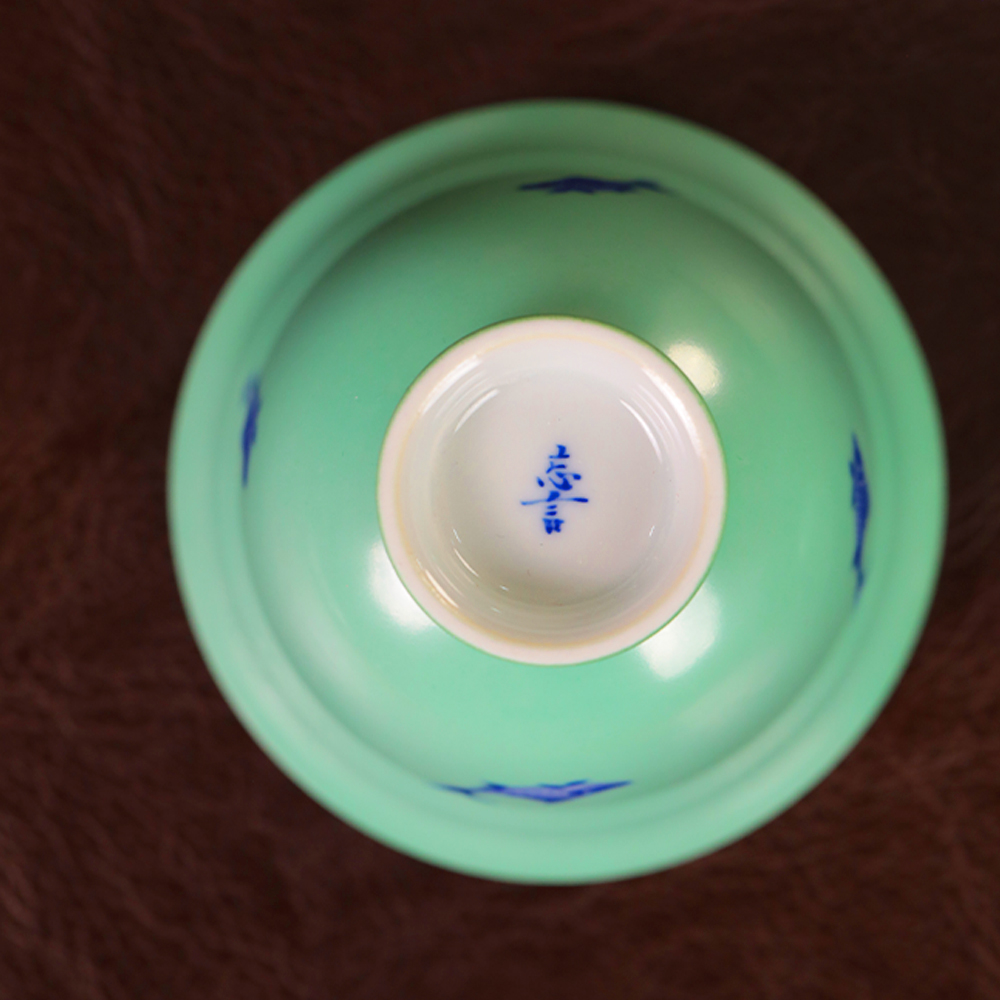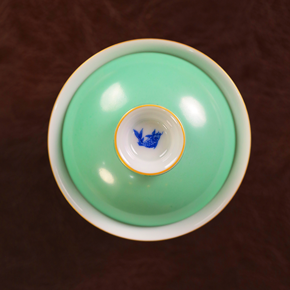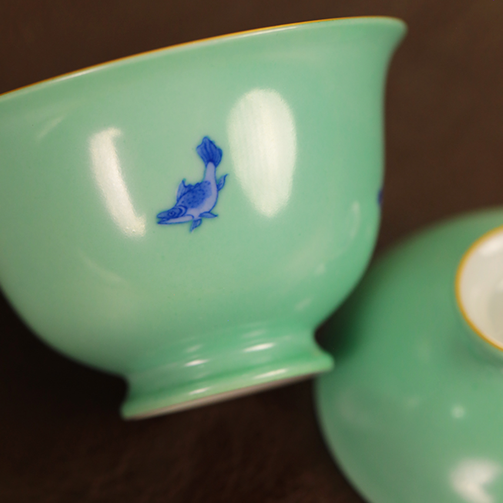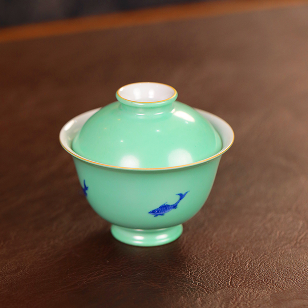 【忘言】青花五鱼纹茶盖碗 曰何文人器