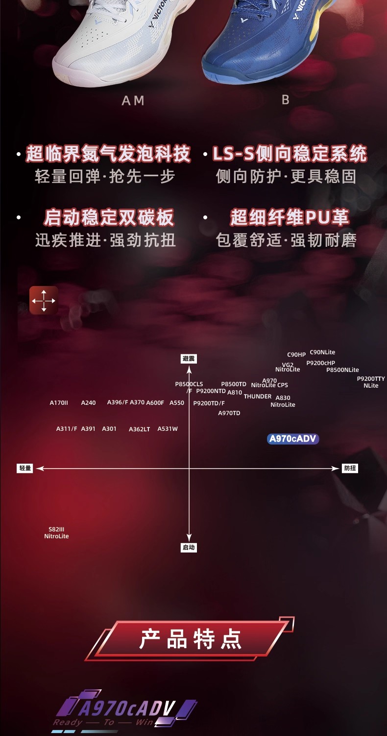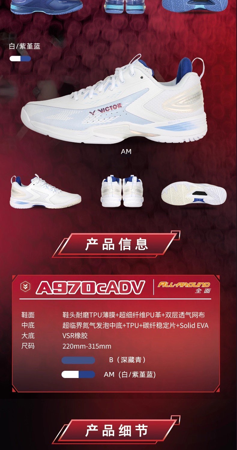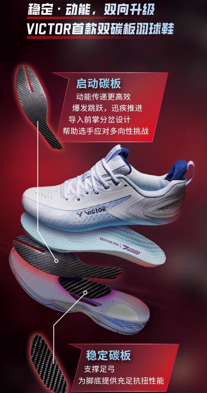 VICTOR威克多羽毛球鞋透气轻弹双碳板V2.5标准楦全面羽球鞋 A970cADV