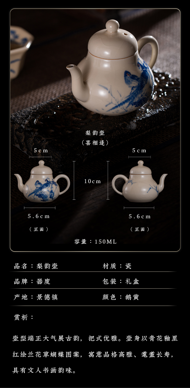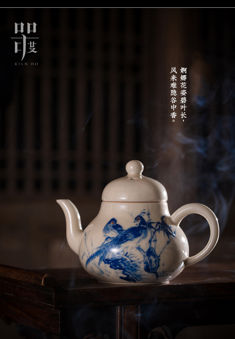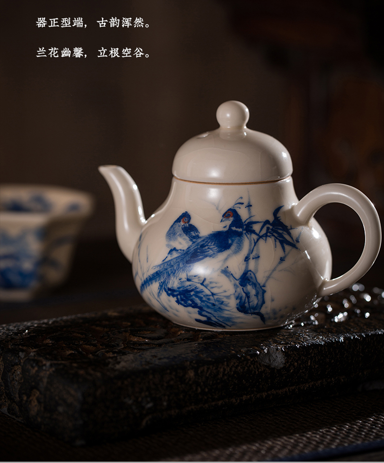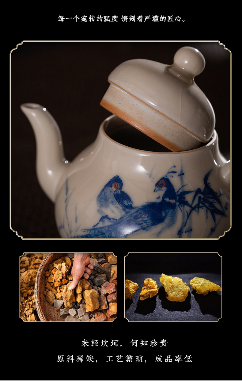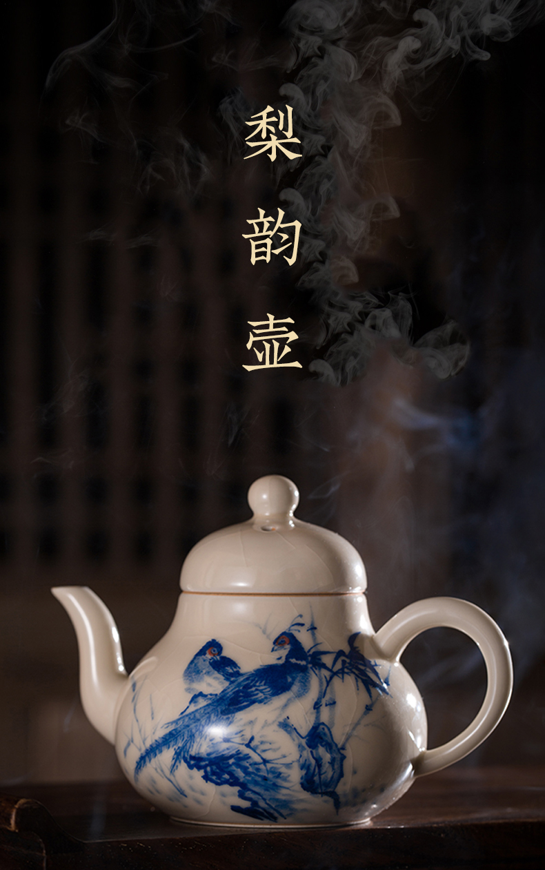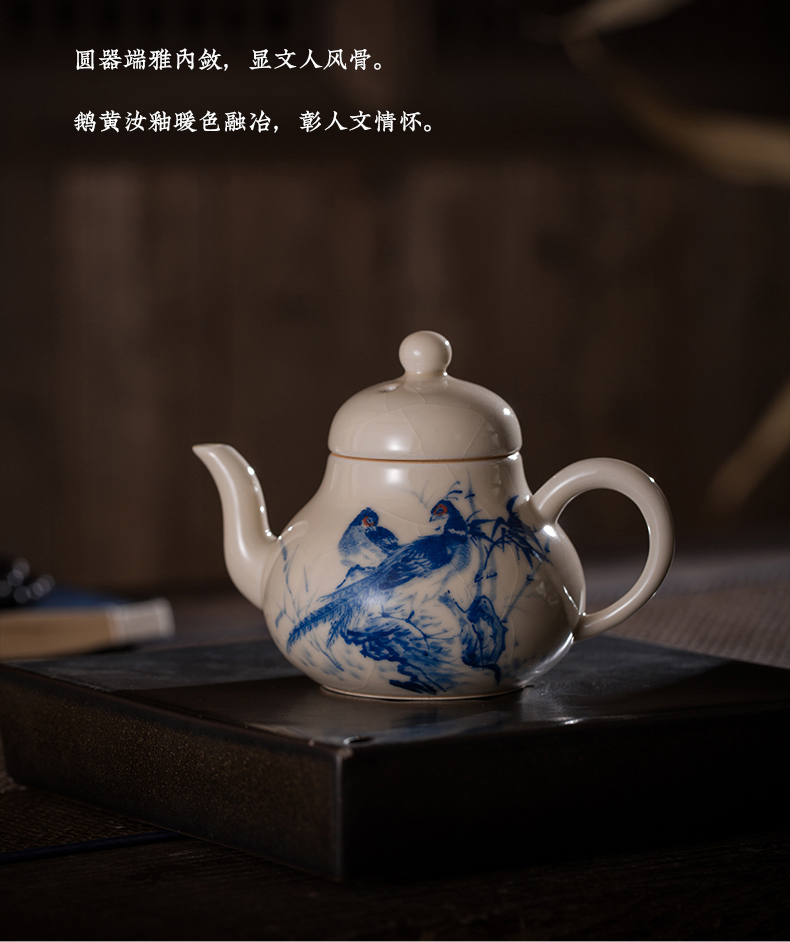 问鼎器度汝窑鹅黄青花梨韵壶(喜相逢)(缺货)