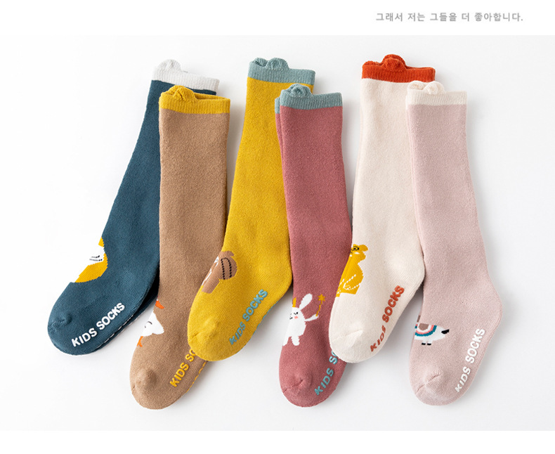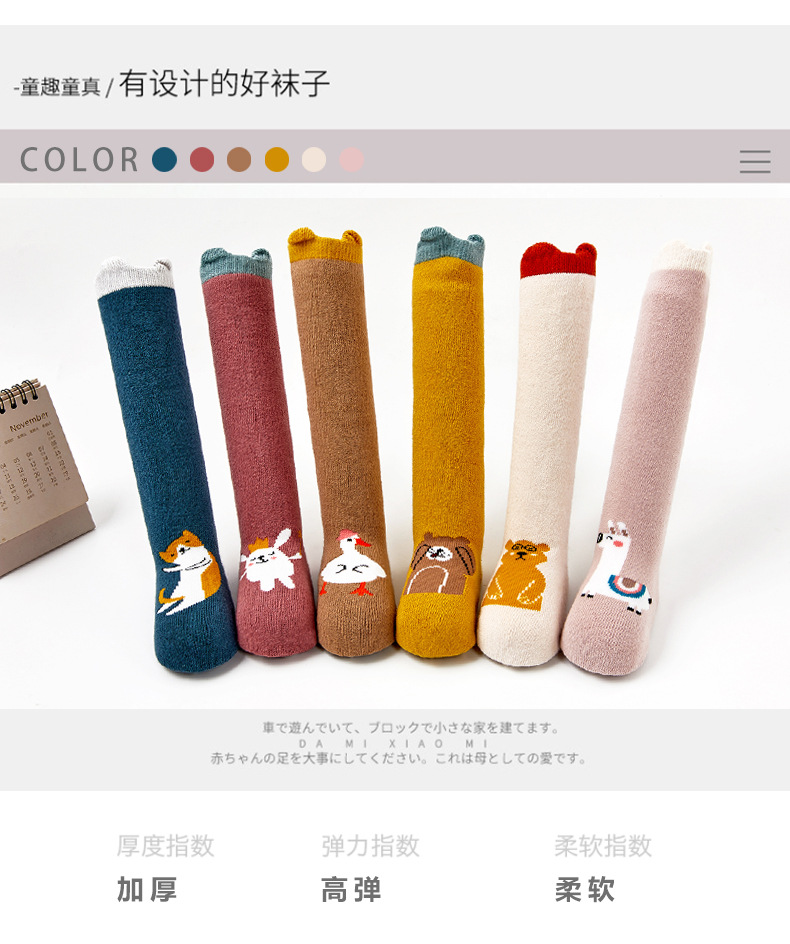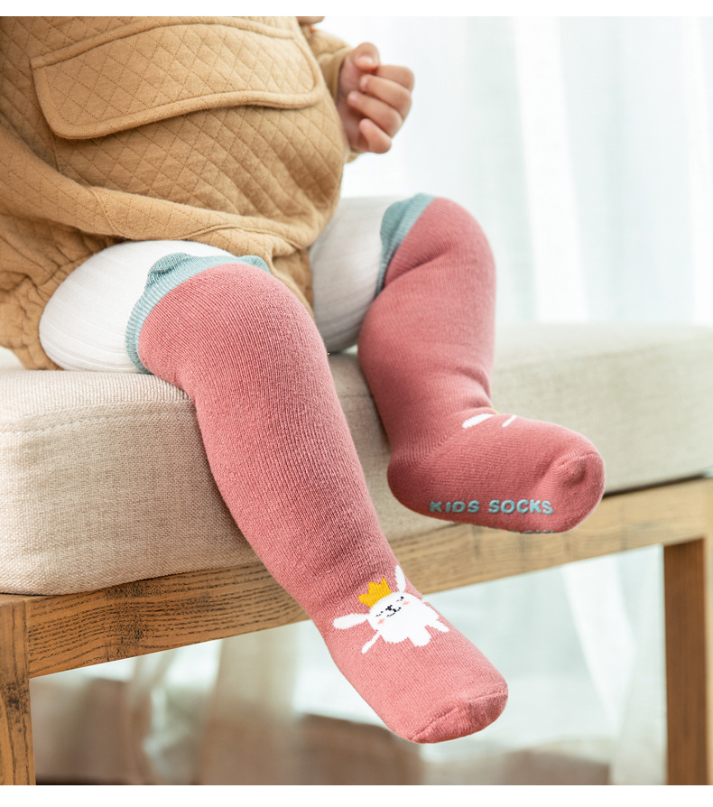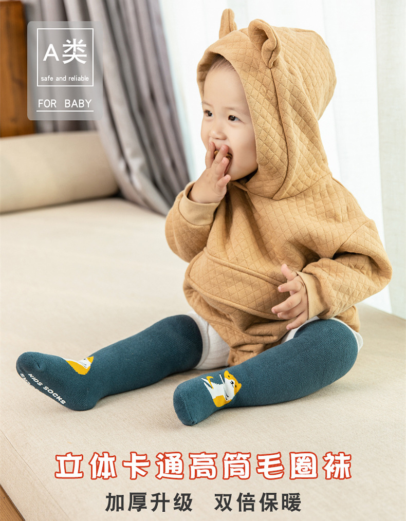 【2双装 加厚升级 双倍保暖】A类冬季高筒加厚点胶宝宝袜婴幼儿小童毛巾袜子卡通过膝长统毛圈袜