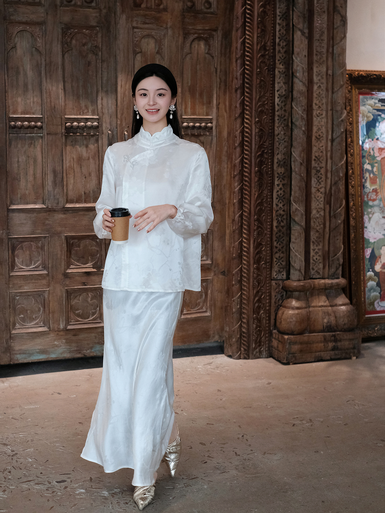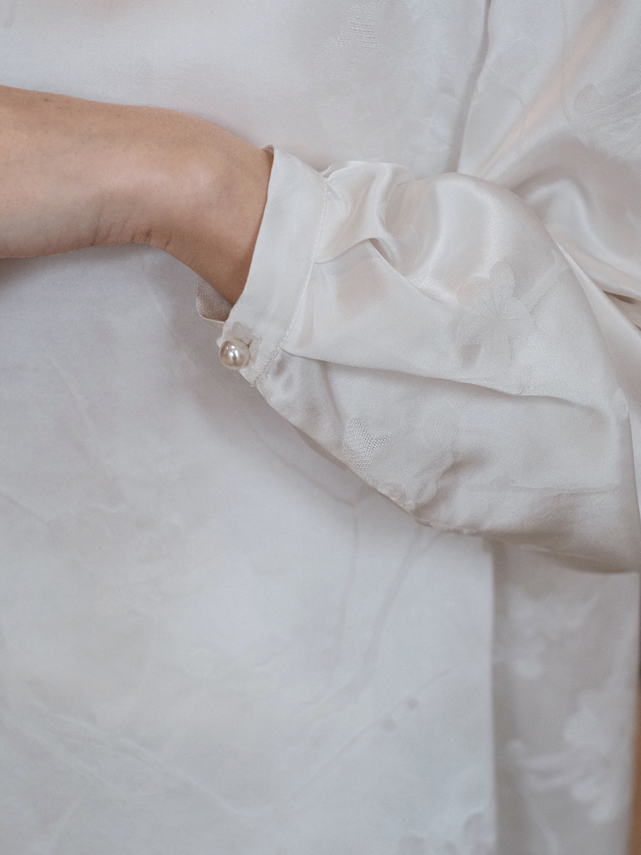 盛唐牡丹| 珍珠白真丝竹子纹偏襟上衣