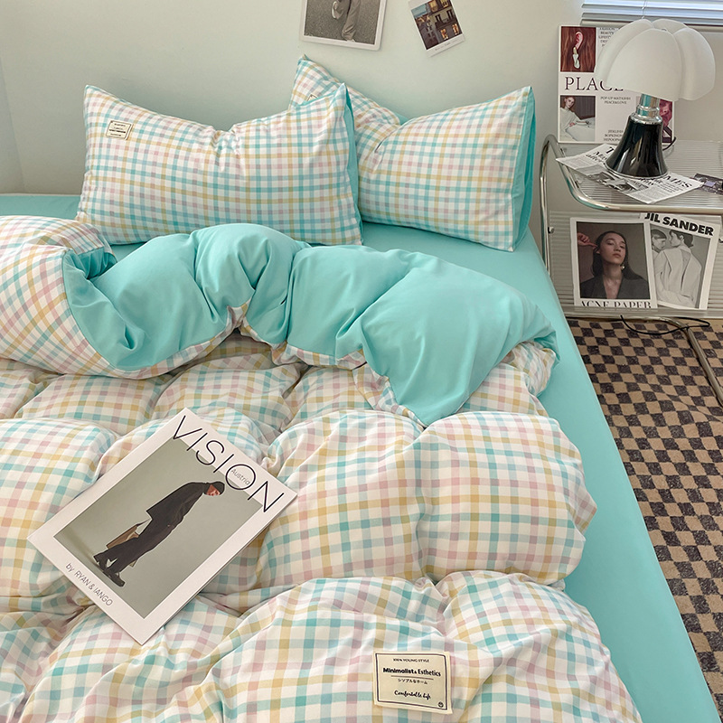 【A类母婴级四件套】春秋季日式格子裸睡四件套 学生宿舍三件套水洗棉 床单被套床笠