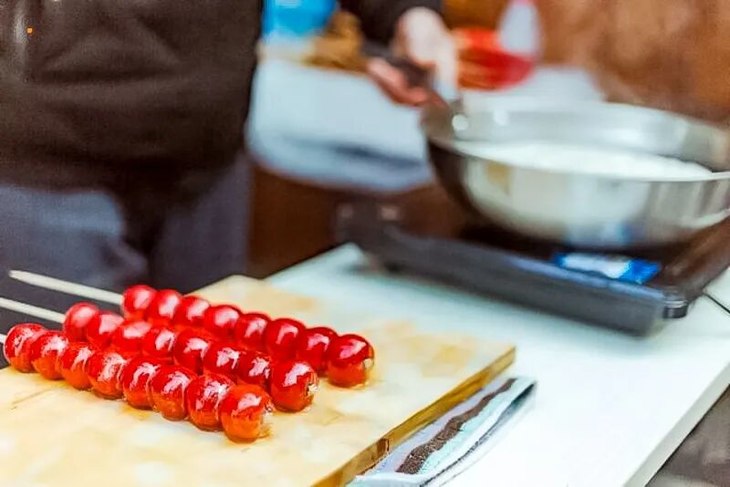它采用活鱼烩制而成。加以当地的把蒿、大枣、枸杞等十多种农家精制酱调制。灶台鱼顾名思义是赋有农家风情灶台铁锅,加以柴火慢炖独特的秘诀精制而成,是一道经久不衰、营养丰富的美味。