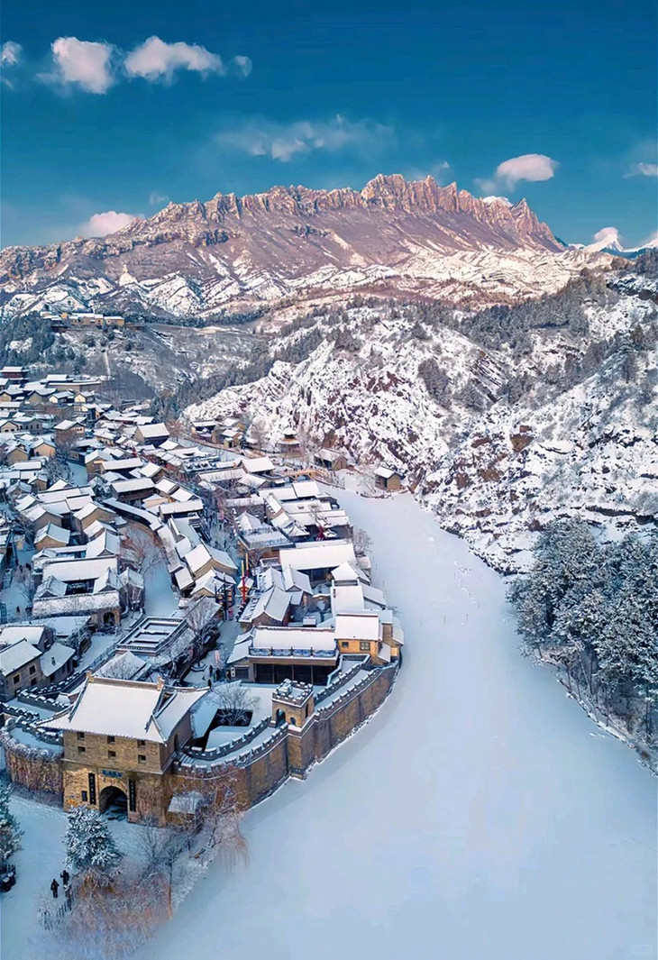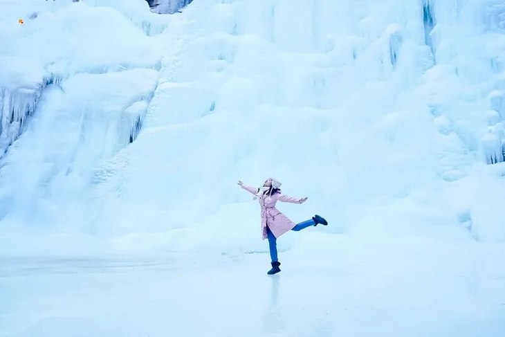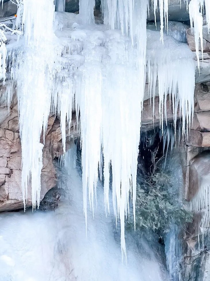 在全长4公里,水位落差220米的悠长峡谷中,长短不齐、大小不一、形状各异的冰挂、冰花晶莹剔透,昔日活跃的山泉瀑布此刻定格成冰瀑奇观,层层叠叠如玉雕般散落在峡谷各处。盘山栈道黑龙潭峡谷里轻轻摇荡,与冰瀑相映成趣,随风叮当作响,乐音响彻山谷。在这里,你可以见到很多网红小姐姐拍大片哟。